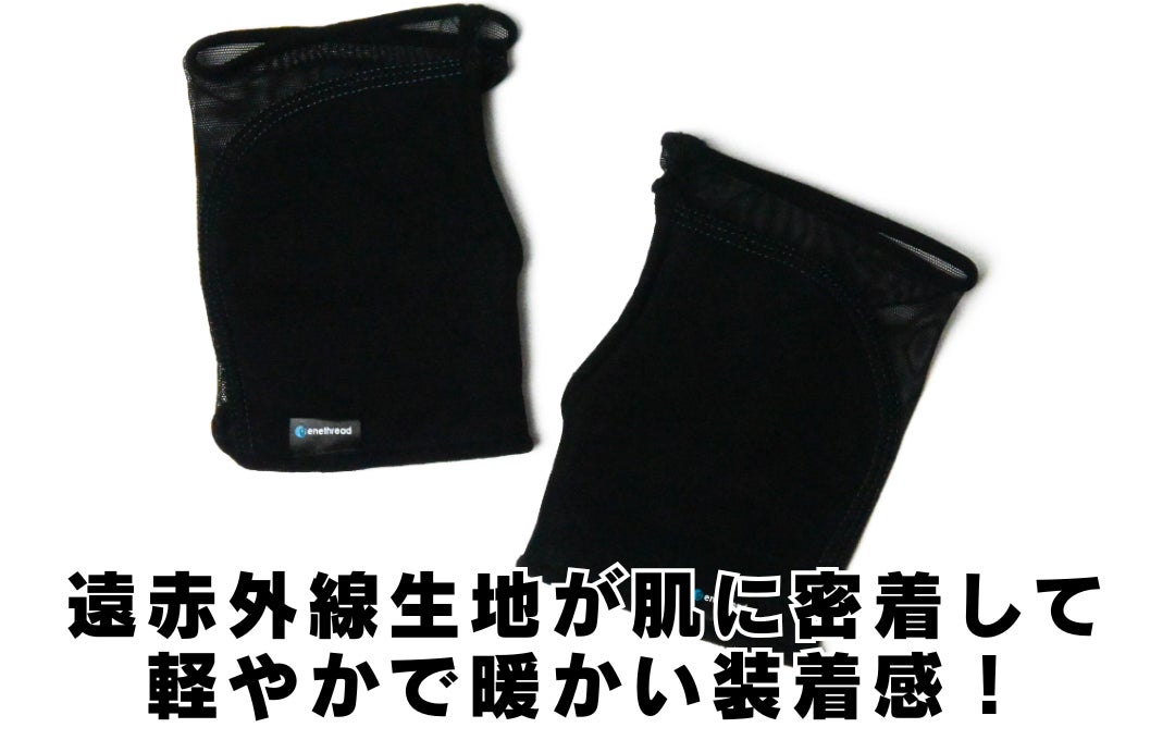 薄く軽量な遠赤外線生地とストレッチメッシュにより、血管や神経の集中する手首をしなやかなに温かくサポート!