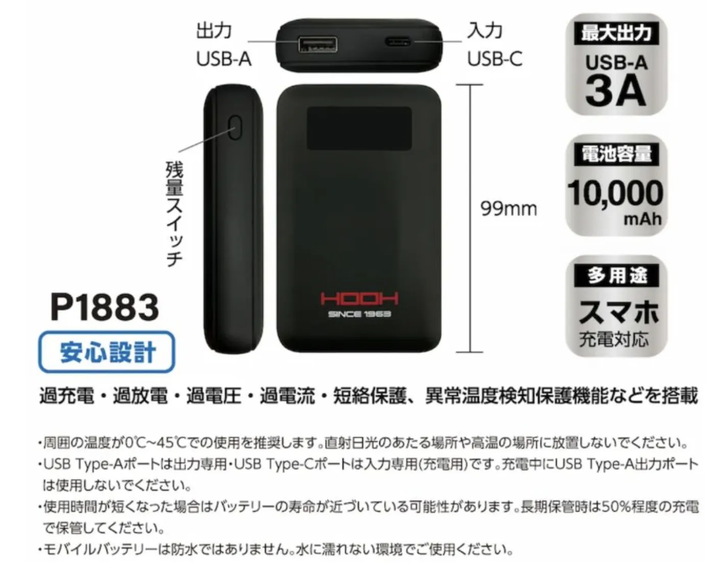 3.【大容量モバイルバッテリー】最長約10時間稼働可能!仕事からレジャー、スポーツまで冬を快適に!