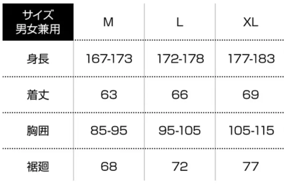 サイズ:S/M/L/LL/3L/4L/6L/8L