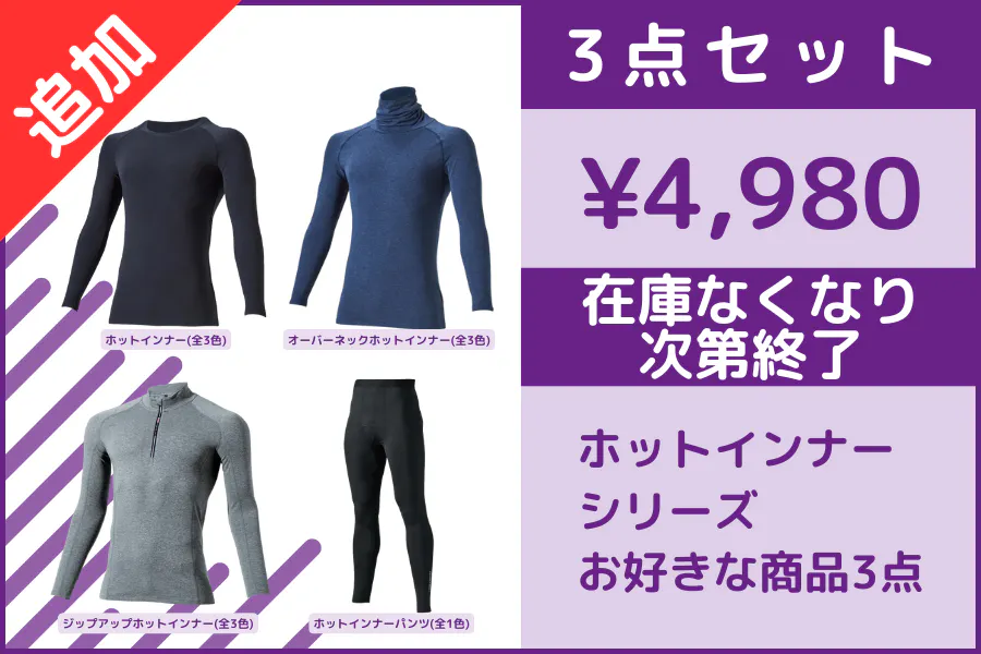 目標額達成を記念してホットインナーシリーズをリターンに追加することが決定いたしました!
