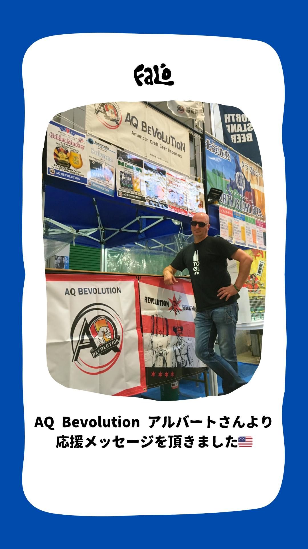 日頃お世話になっている方からの応援メッセージ、最終日を目前にビールインポーター「AQ Bevolution」の桑野アルバートさんからメッセージをいただきました!
