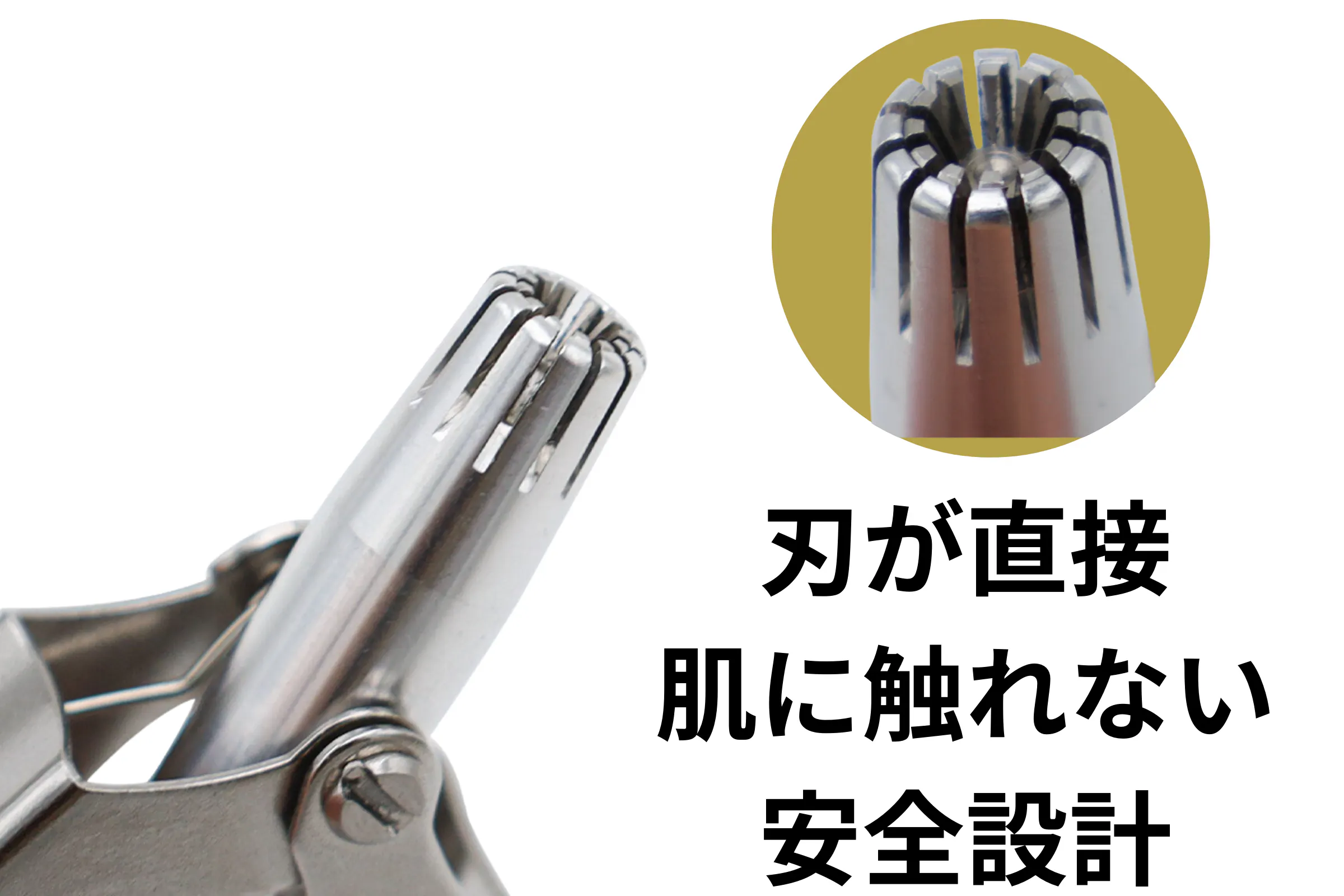 二重構造で内側にだけ刃がついているので鼻腔内を傷つけません。