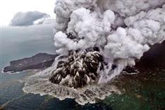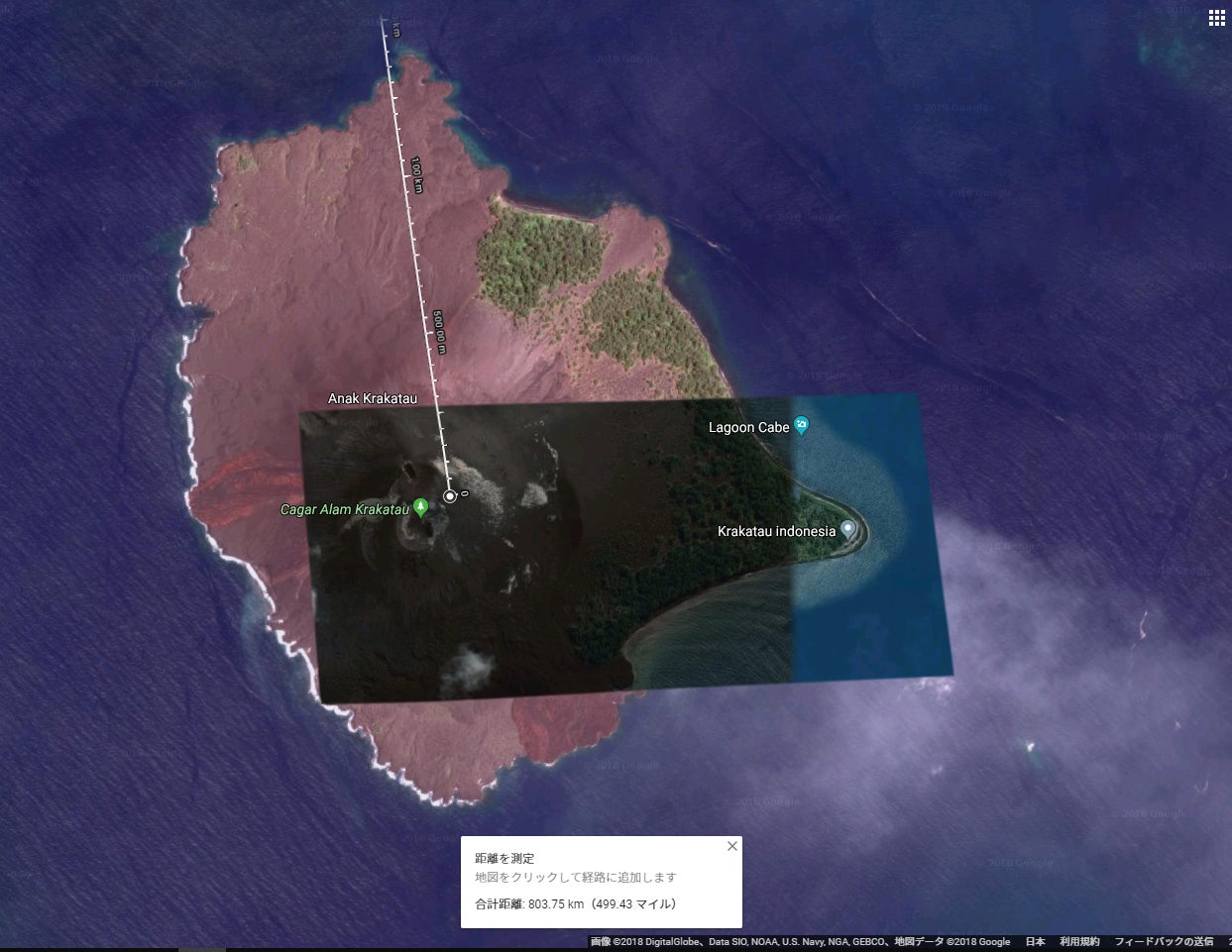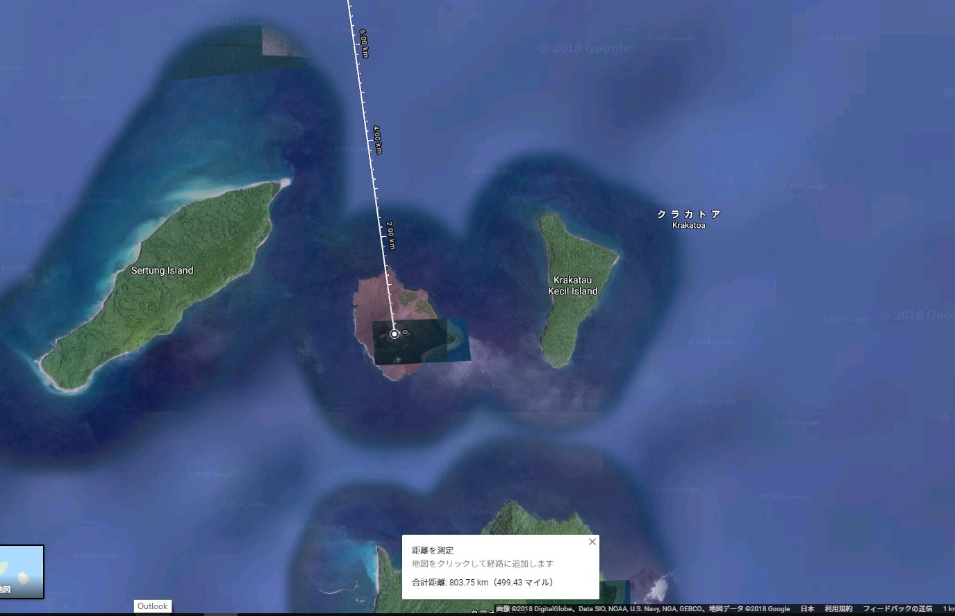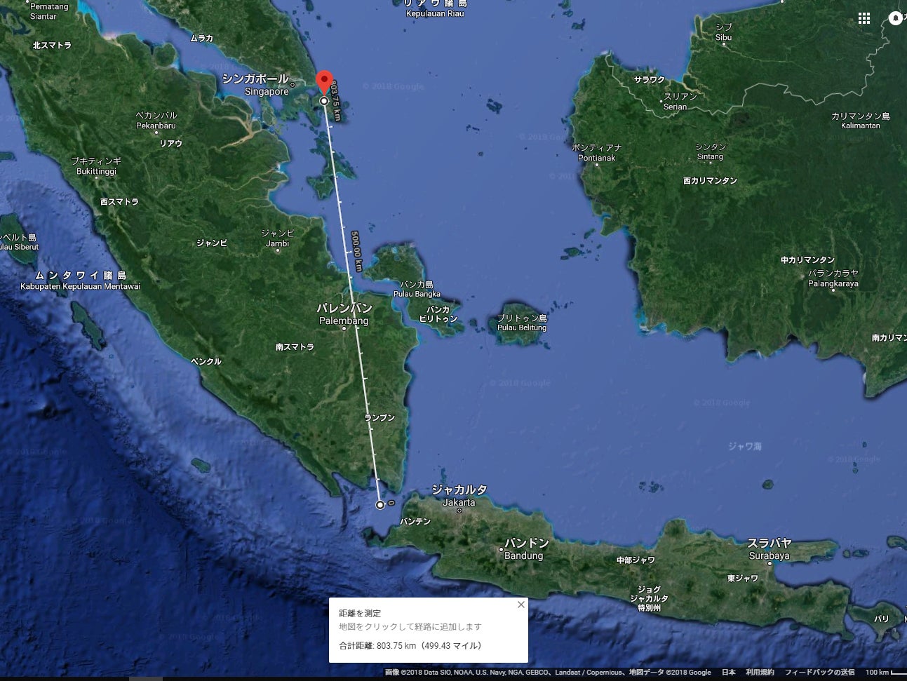 下図↓は火山噴火地からプロジェクト地のビンタン島を線で結んだものです。