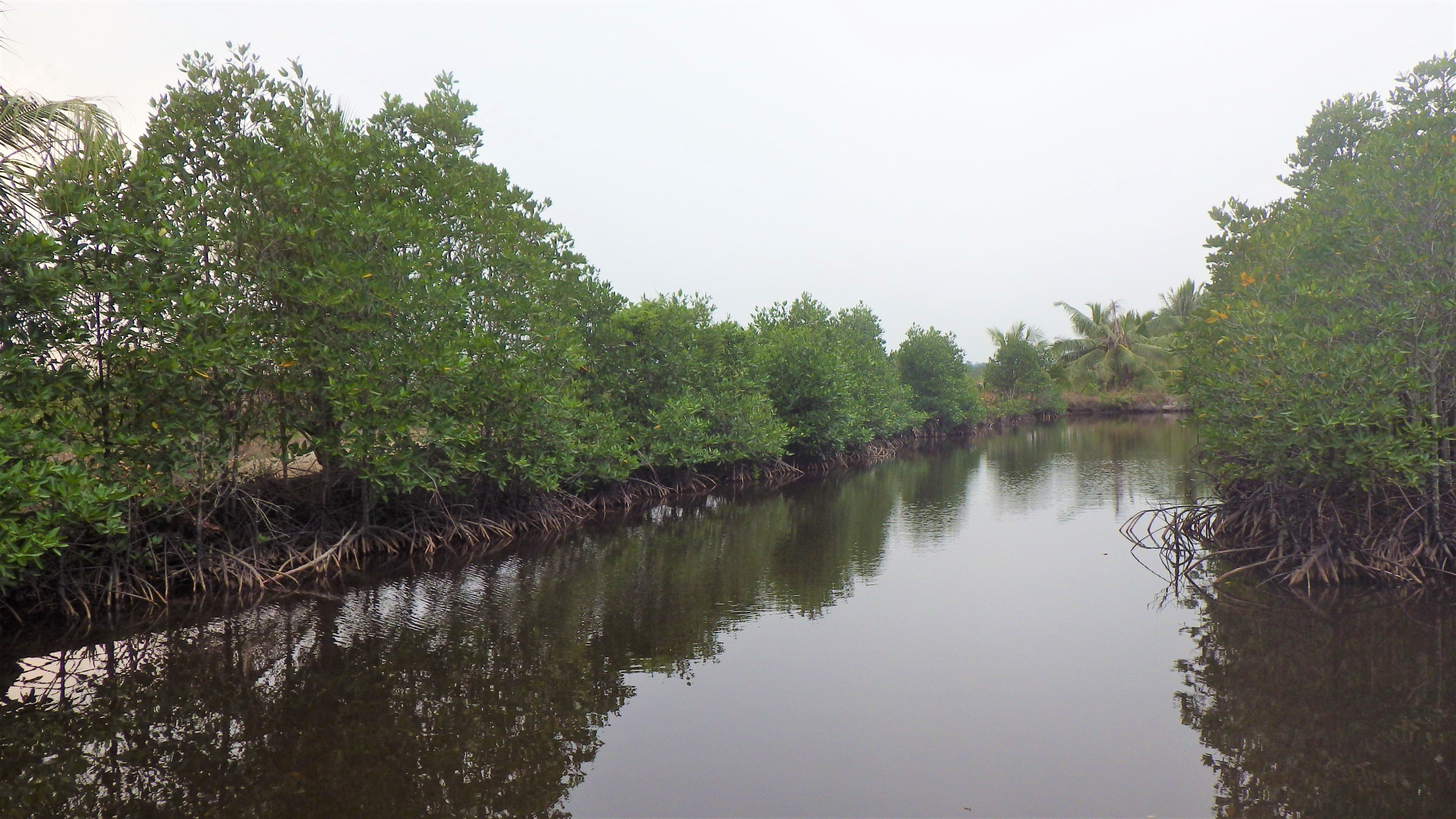 左側に並んでいるマングローブは池の周りをぐるりと取り囲むように植林されており、