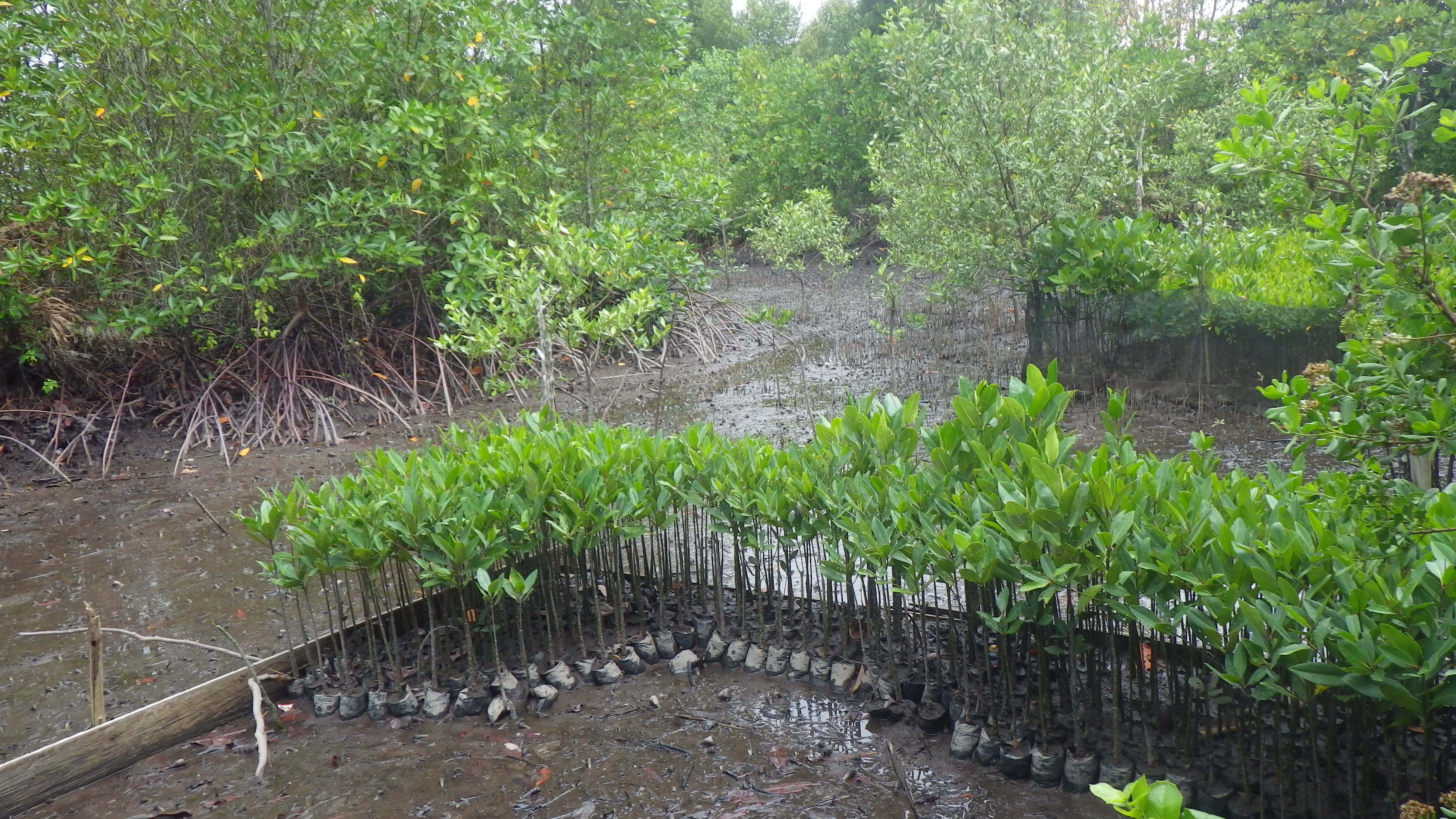 こちらも苗木。奥には自然に生息しているマングローブも見受けられます。