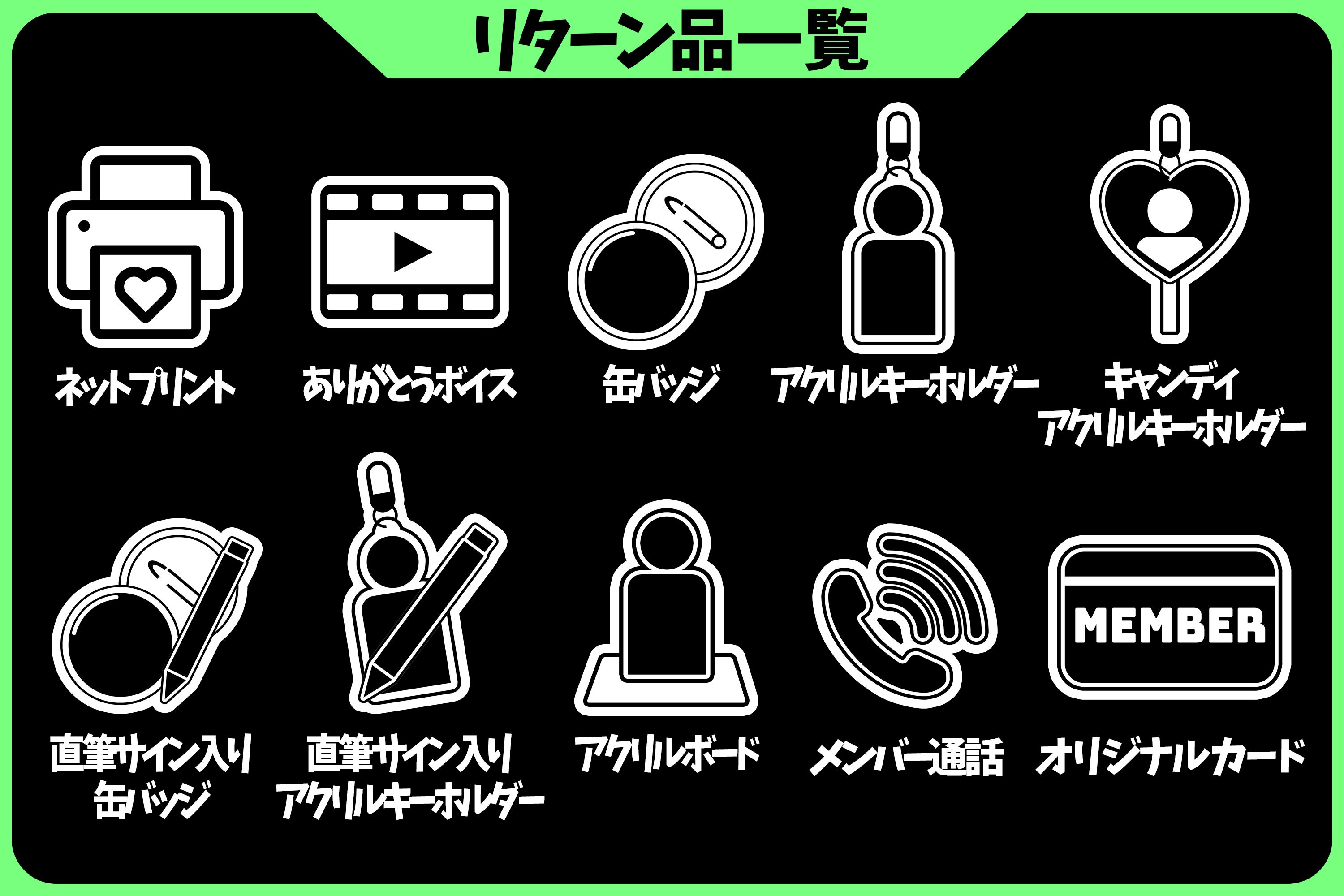 支援コースによってリターン品が異なるため、下記リターン品、サービス各種一覧と早見表、及び各支援コースをご確認ください。各グッズの仕様詳細について近日紹介予定!