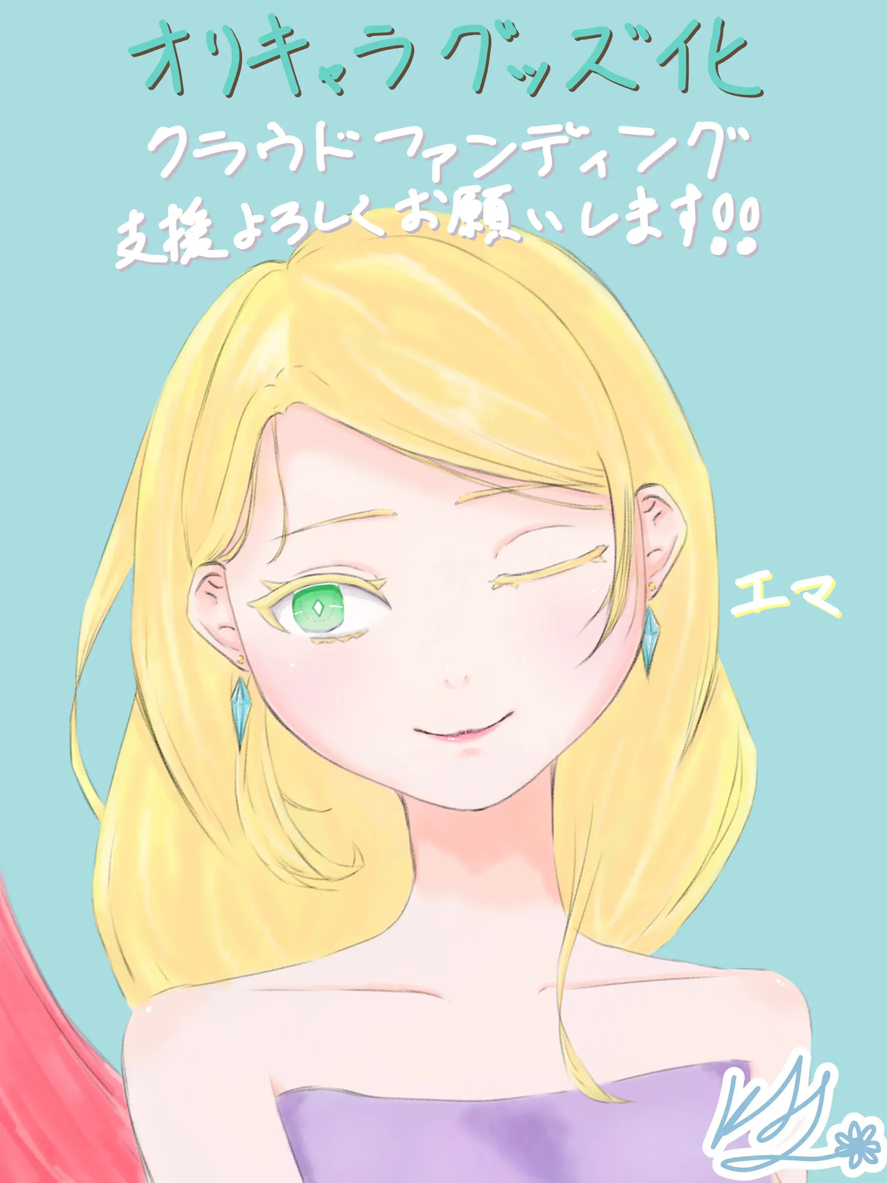 2024/11/27 01:08終了まで1週間を切りましたね!現在ご支援は頂けていませんが、もしこのプロジェクトが失敗に終わってしまっても、いつか絶対この子達のグッズを販売するというのは決まっています!(いつになるかは分かりませんが……)このプロジェクトで少しでもご支援を頂けたら、ミニアクリルスタンドや缶バッジなど比較的安価で作成依頼を出せる物は早めに販売をしようと思っています。いつか、この子達のフィギュアを作成して並べて眺めるのが夢です!今回のこのイラストは、息抜きにラフを描いていたものを仕上げたものです!シチュエーション的にはエマ(この子!)とカレンがお風呂上がりにピアス交換をしている場面のエマを切り取ったという感じです!なので左下の赤桃色の物はカレンの髪です笑 もっと見る