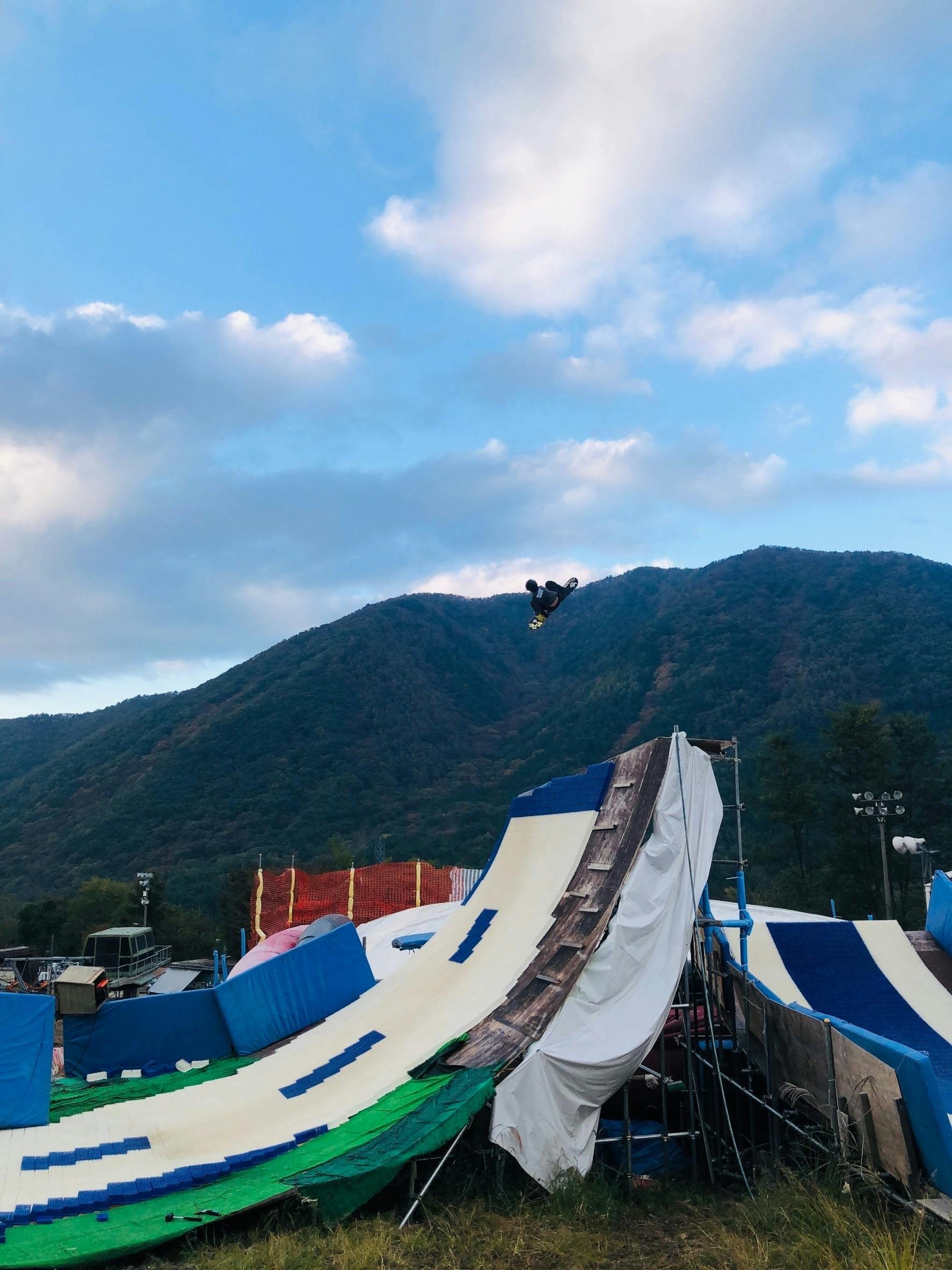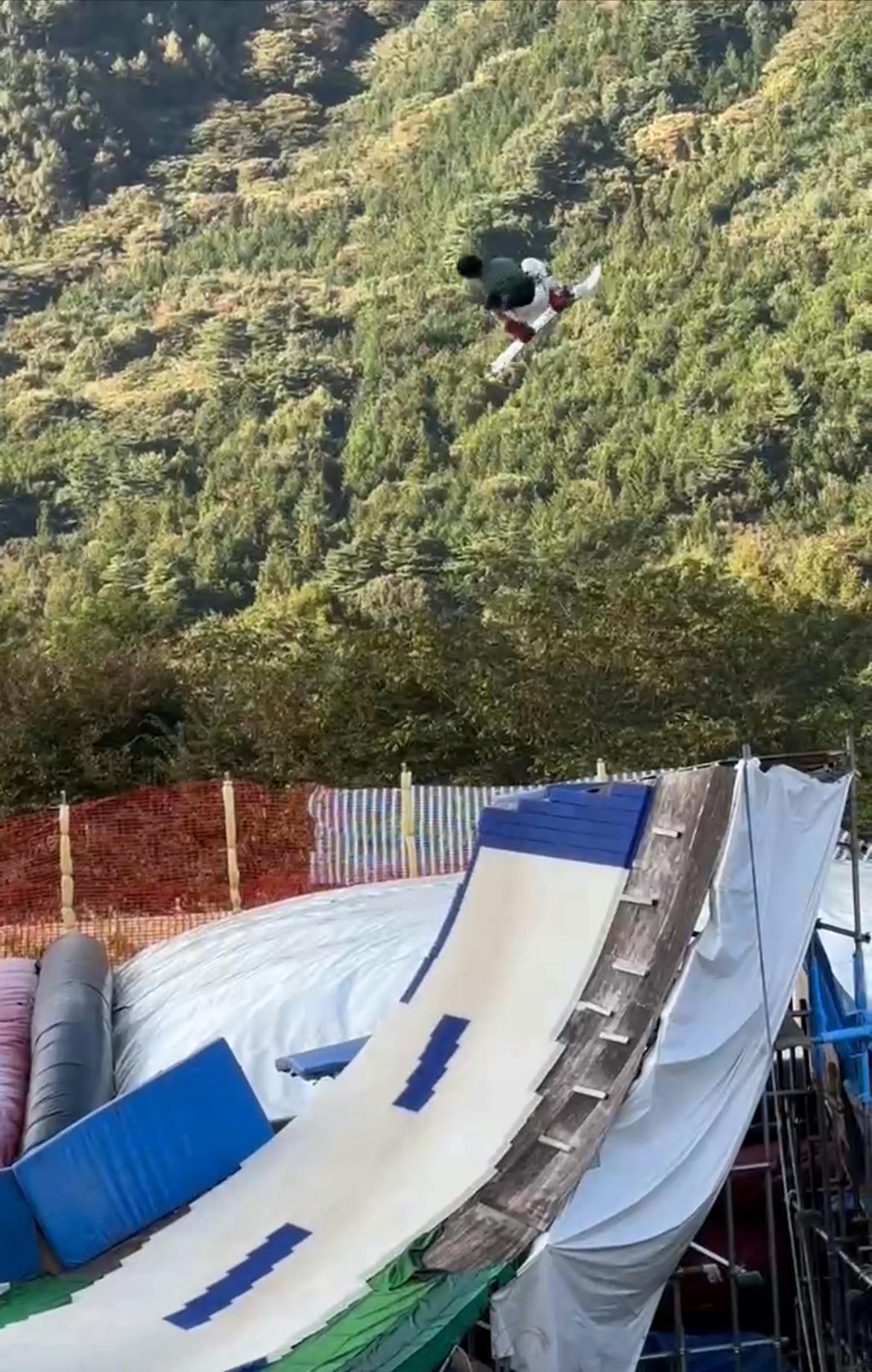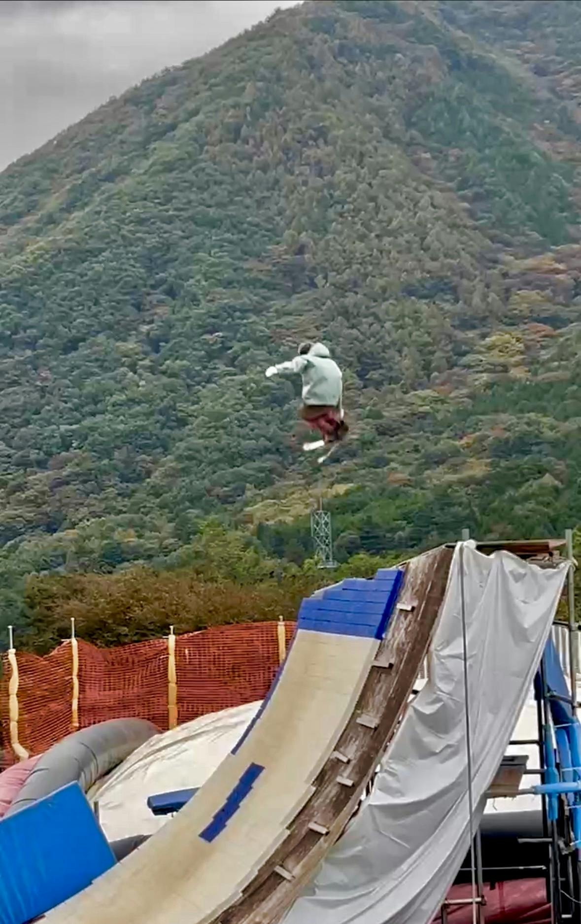 雪のない時期にスーパーパイプに近い形状の屋外施設で日々トレーニングできることで、