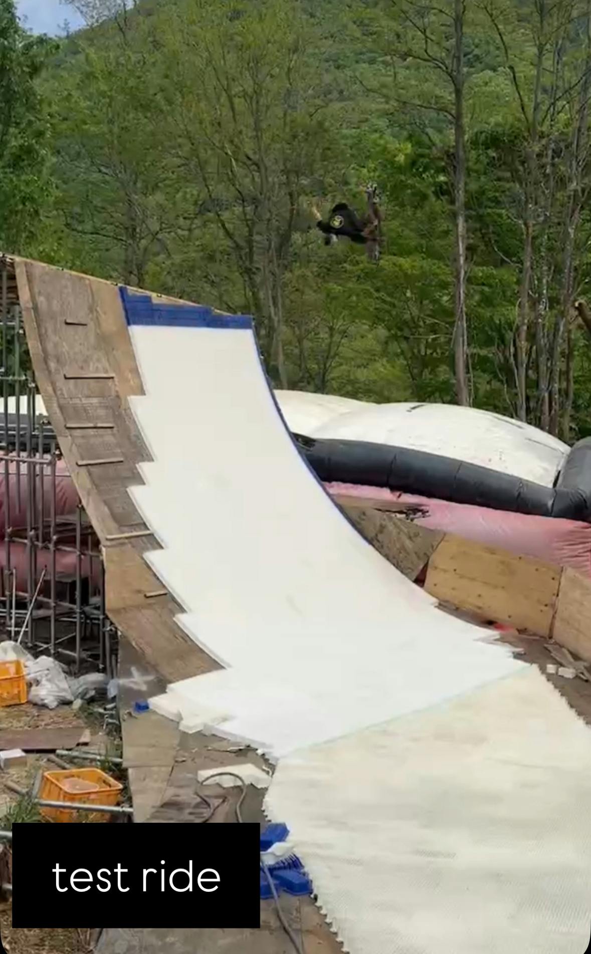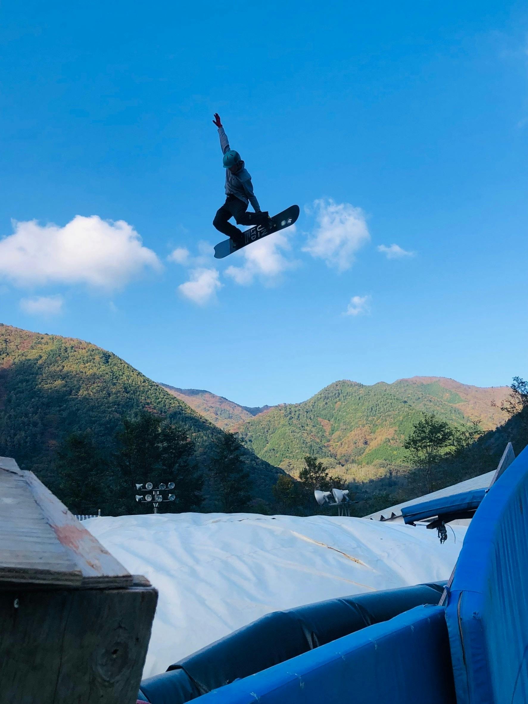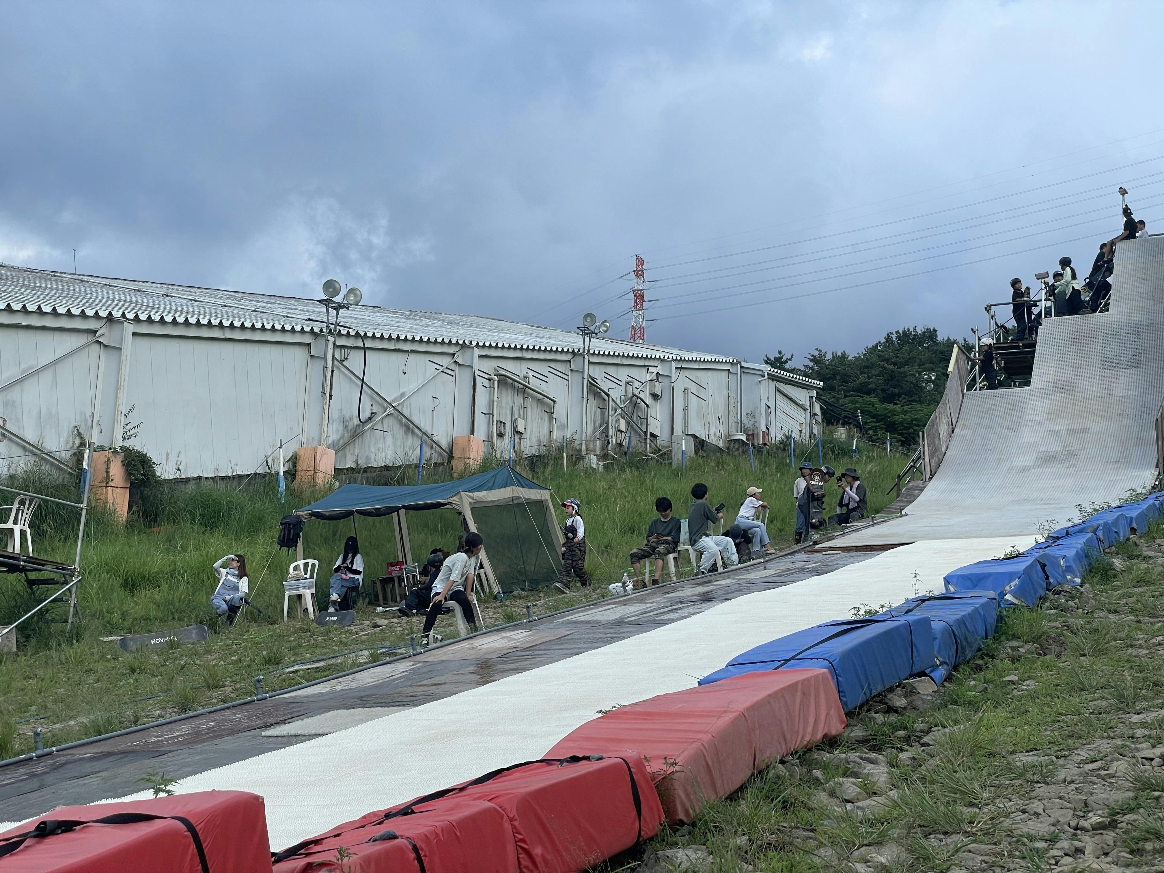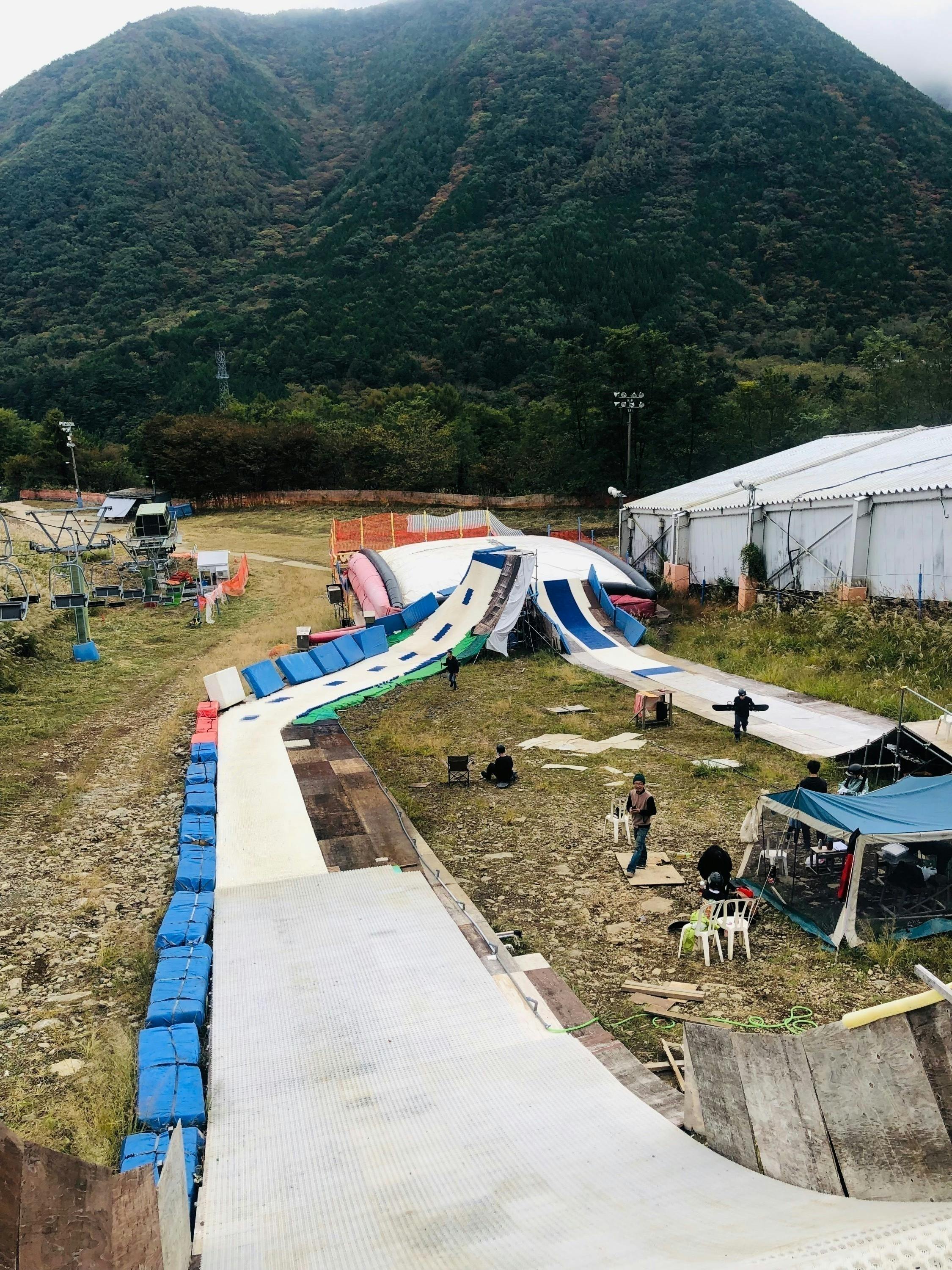 雪のない時期にスーパーパイプに近い形状の屋外施設で日々トレーニングできることで、