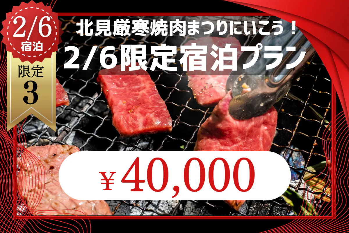 本プロジェクトを応援してくださる方限定でご用意した、「北見厳寒の焼き肉まつり」参加権付き・1泊宿泊プランです。
