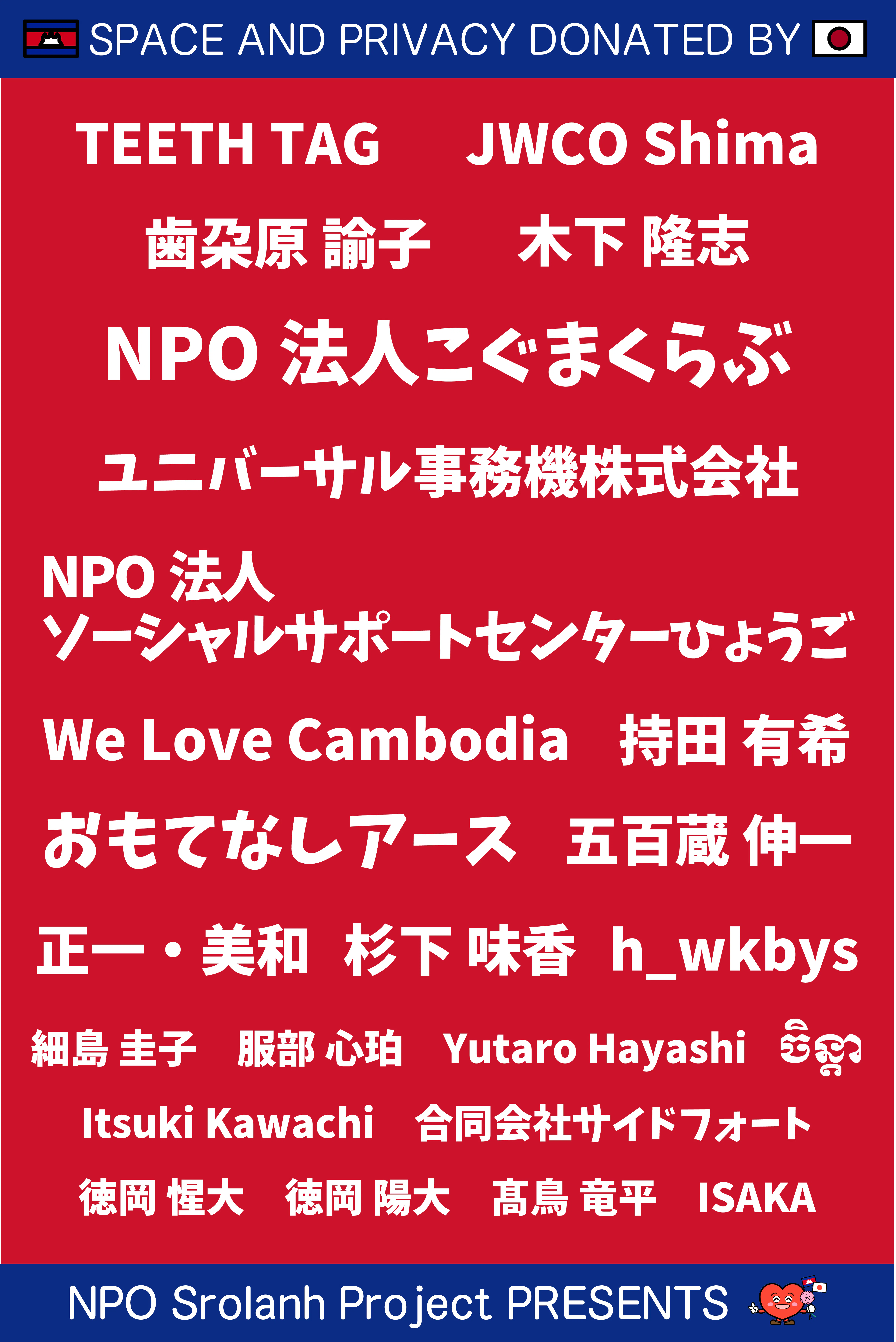 ※NPO法人スロラニュプロジェクトが取り組んでいる"カンボジアの村に住む障がいのあるこども達へのサポート"やその他の活動にご協力いただける方は、ホームページをご参照の上、寄付等でのご支援よろしくお願い致します。