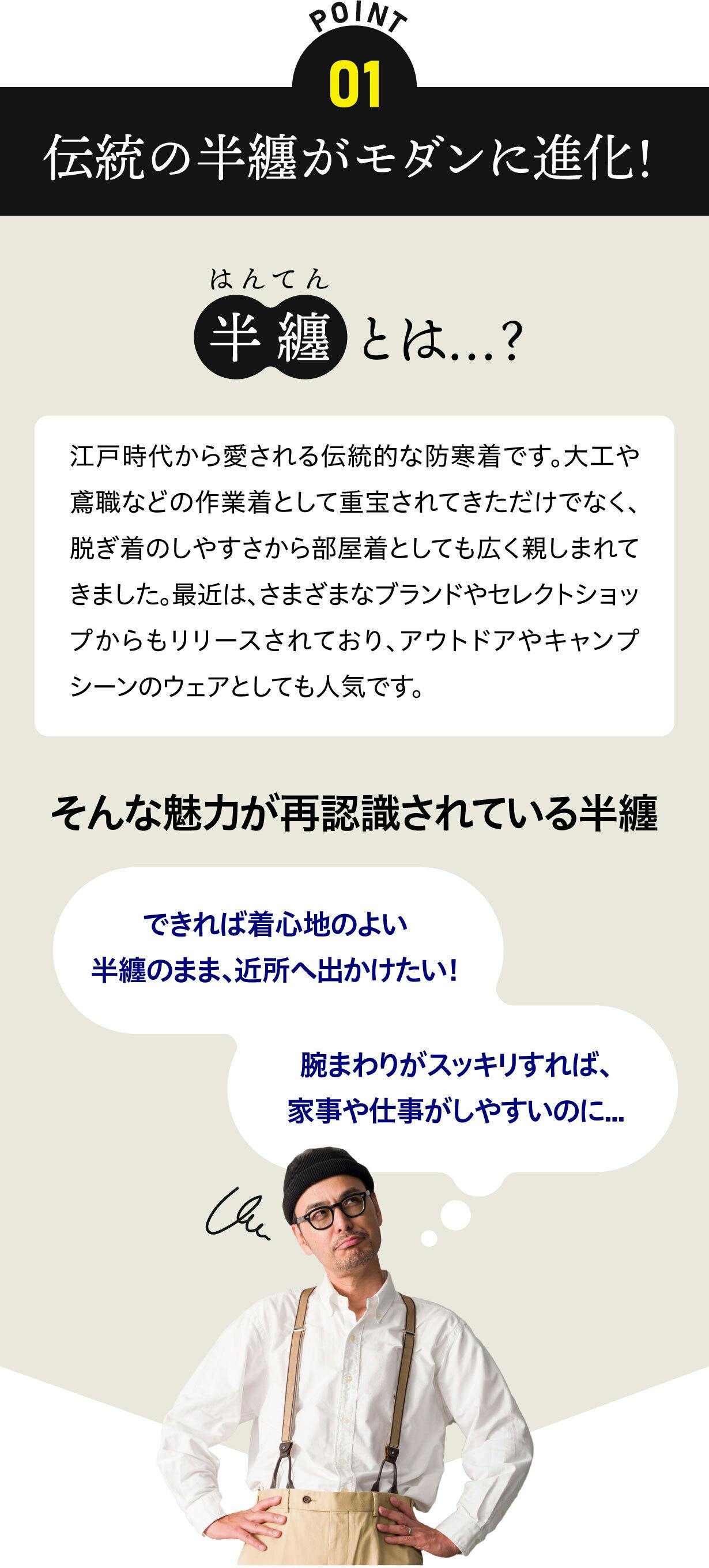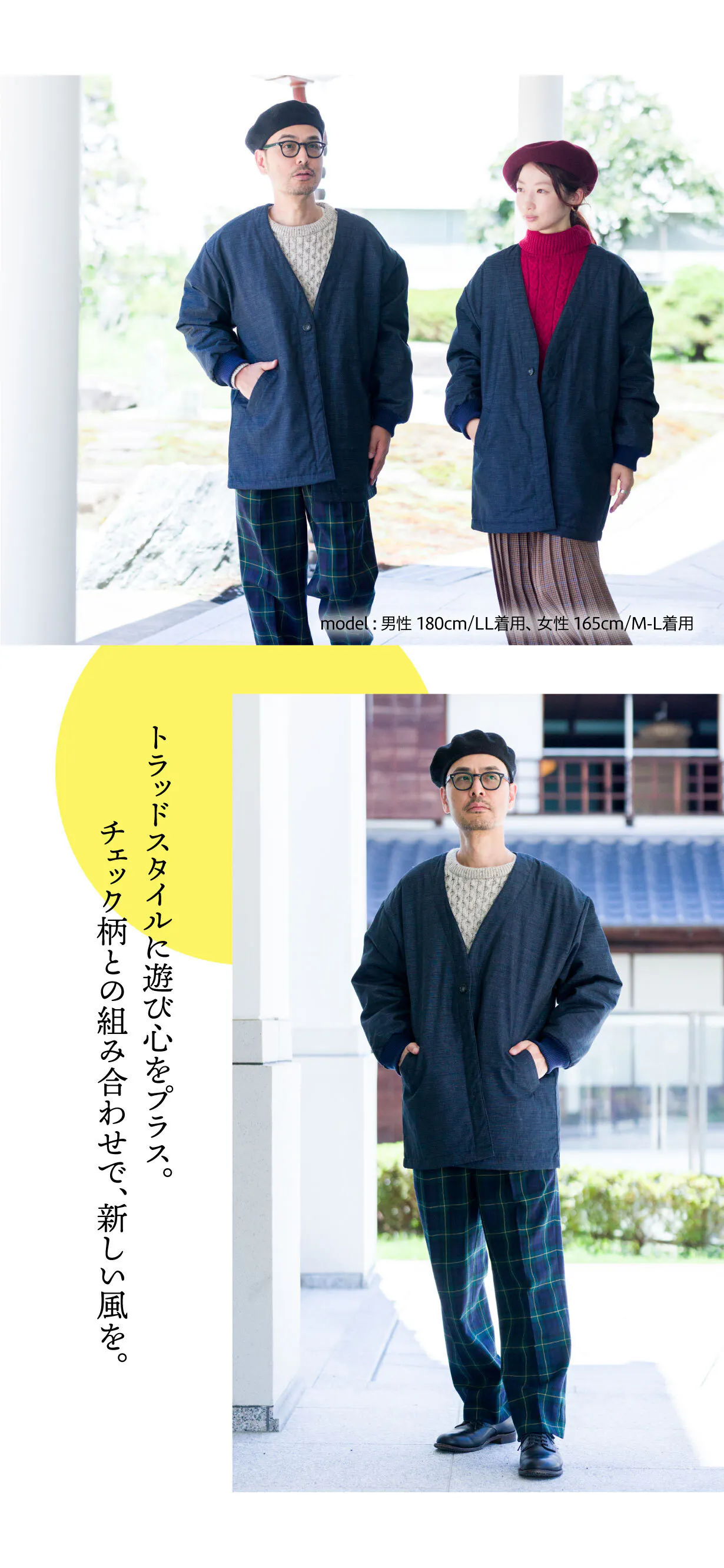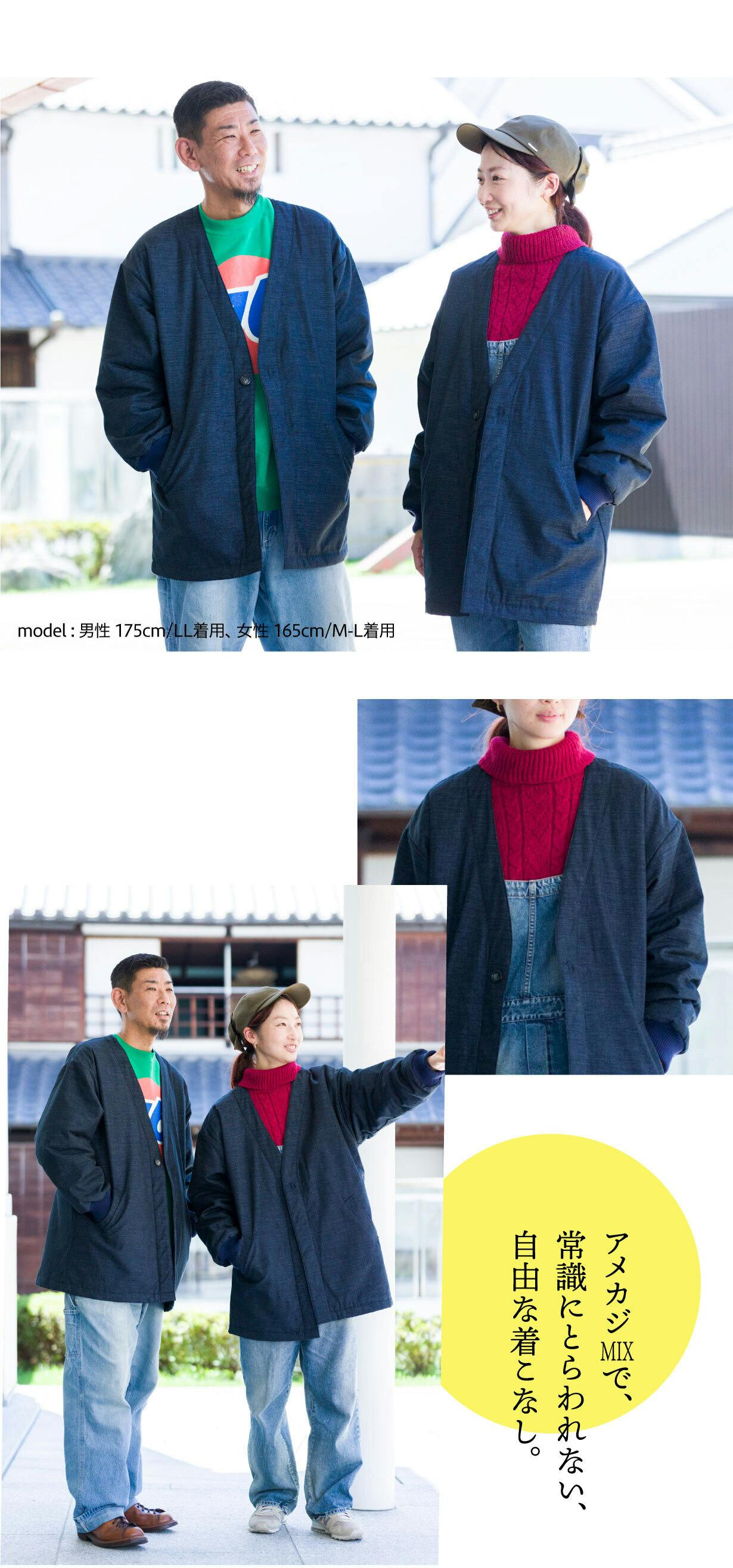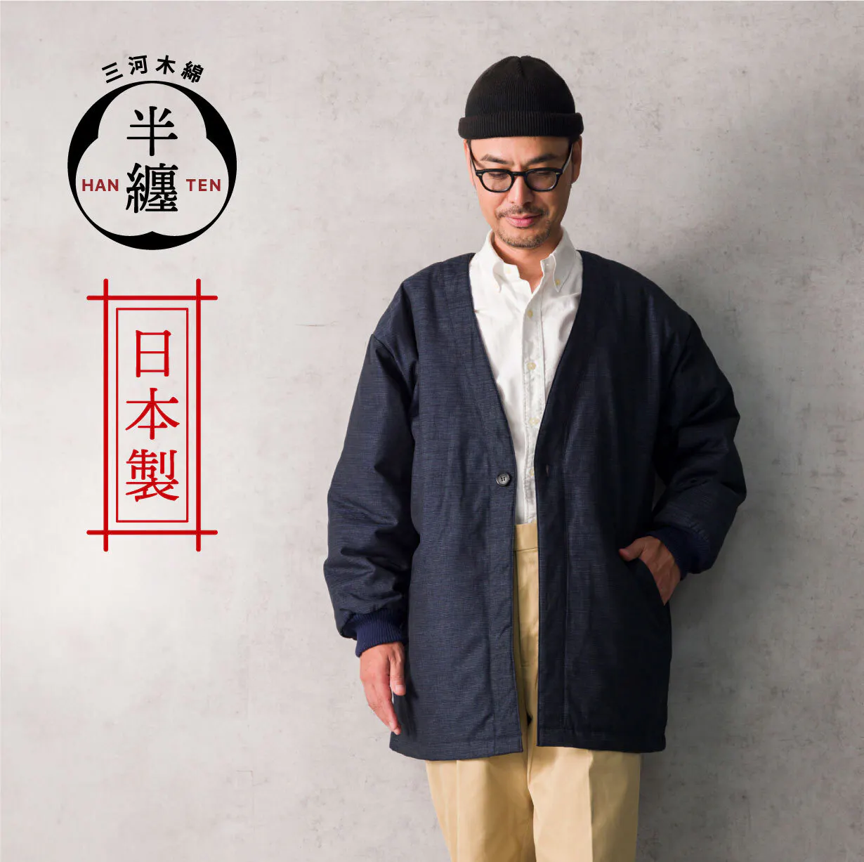 弊社でも元々はんてんジャケットを取り扱っていましたが、お家でまったりくつろぐ事に特化したものなので、お出かけ着としての仕様ではなかったのです。