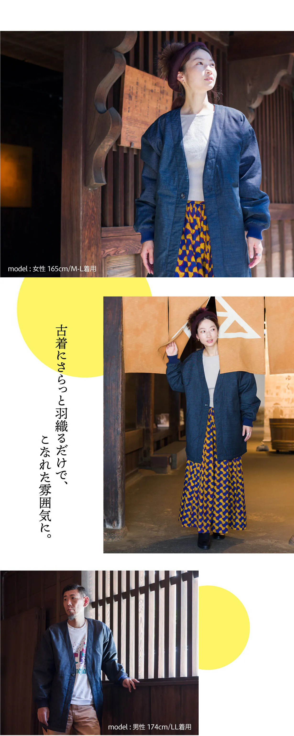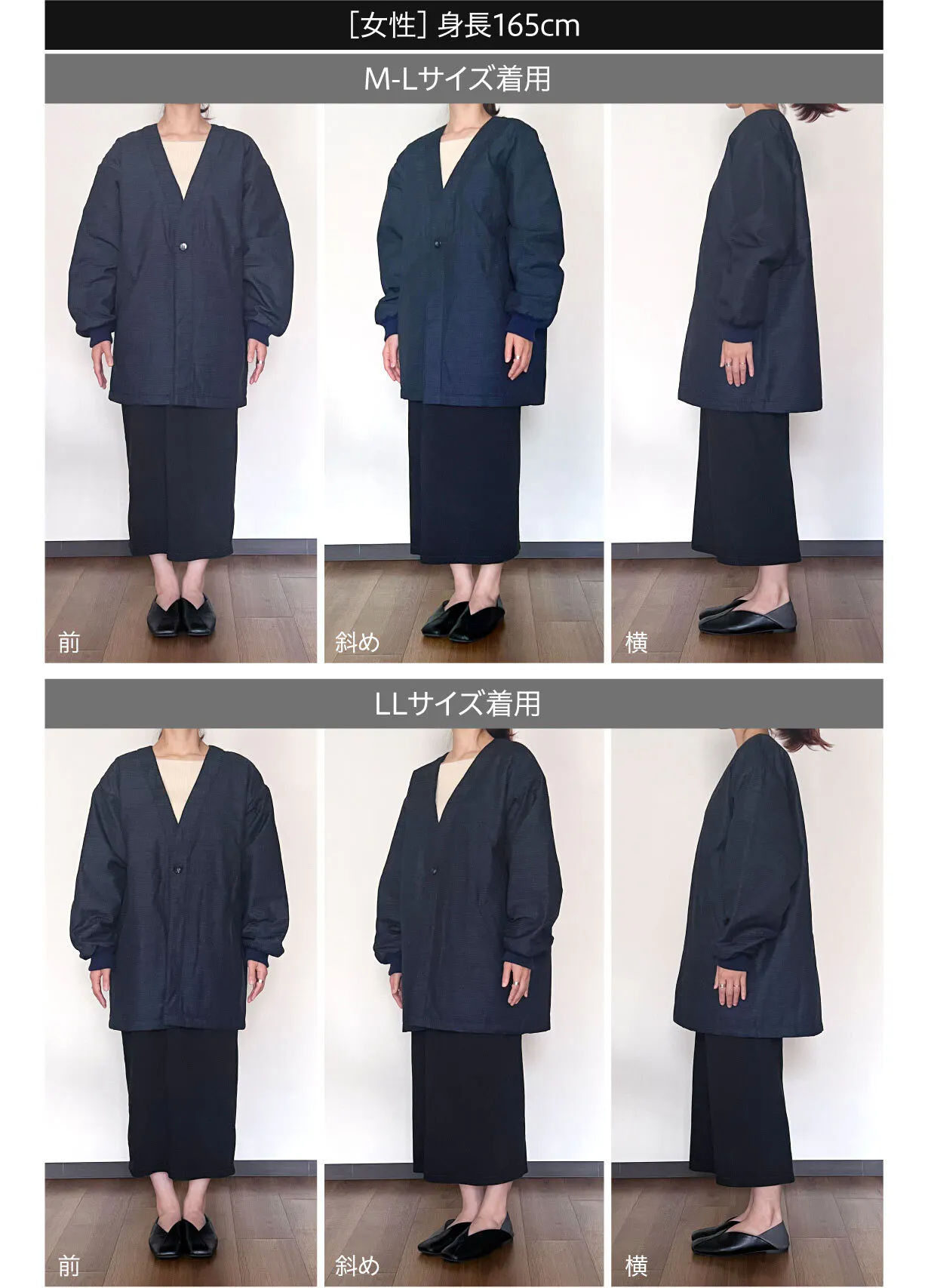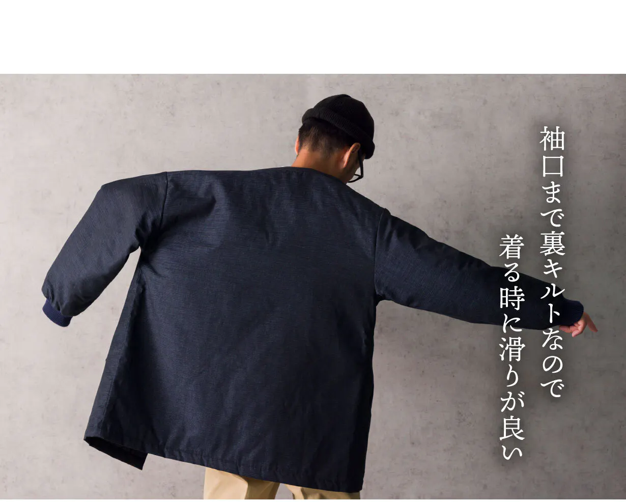 中わたの量を調整して、秋から着られる「軽さ」と「動きやすさ」をプラス。