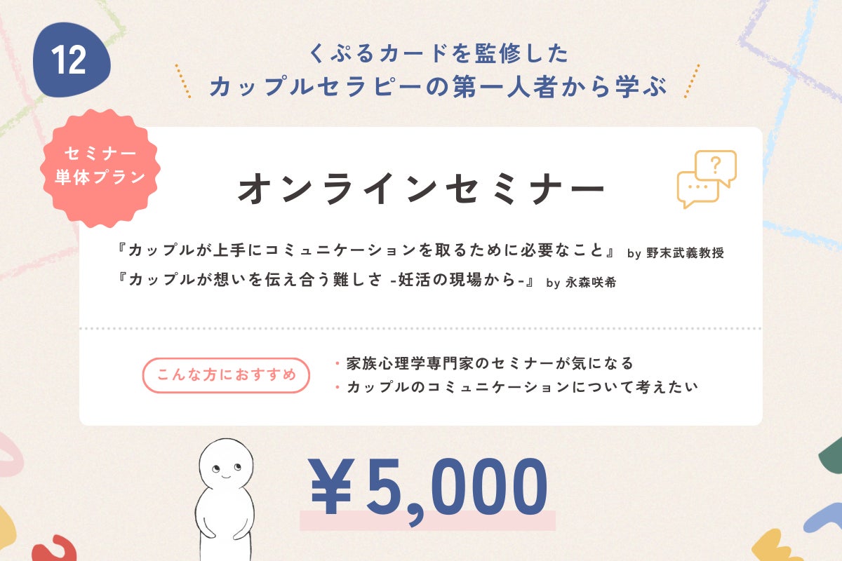※リターン⑦「くぷるカード1セット+くぷるカードオンライン使い方説明会+オンラインセミナー」のうち、オンラインセミナーのみのリターンとなります。セミナー内容や実施日は同じです。