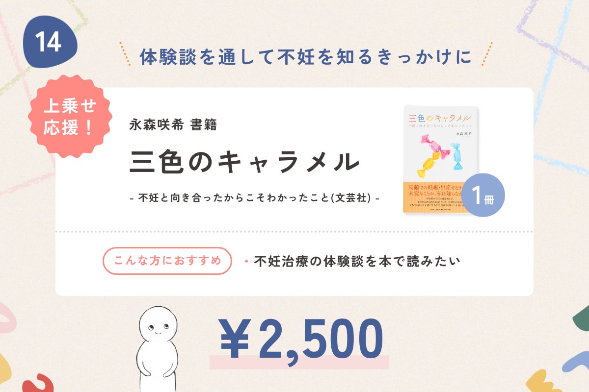 ※リターン⑥「くぷるカード1セット+くぷるカードオンライン使い方説明会+書籍「三色のキャラメル - 不妊と向き合ったからこそわかったこと」のうち書籍のみのリターンとなります。