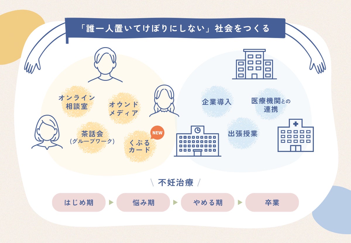 こんにちは。永森です。クラウドファンディングのスタートから、12日が経ちました。現在は、達成率59%(12月3日11時時点)!そして限定30セットのリターン「早割20%OFF くぷるカード1セット+くぷるカードオンライン使い方説明会」は、なんと終了いたしました…!!皆さまおひとりおひとりからいただいた温かい応援が、大きな励みになっています。本当にありがとうございます。引き続き、#くぷるカード に力を貸していただけましたら幸いです。▶クラファンページはこちらさて今日は、くぷるカードを開発するきっかけにもなった、私の活動についてお話しさせてください。私は現在、一般社団法人 ライフキャリア妊活サポート・モリーブにて「子どもを願う想い 叶わなかった想いを支えます」を信条に、妊活・不妊に関連するライフキャリアで悩む方々のサポートや、その社会課題の解決に取り組んでいます。具体的には、以下のような活動をしています。気になる内容がございましたら、詳細をご覧いただけますとうれしいです。くぷるカードとともに必要な方に届き、今を一歩進めるきっかけにしていただけることを願っております。【当事者へのサポート】〇 オンライン相談室『ハナセルフ』不妊のことのみならず、その問題から派生するさまざまな問題(人間関係やキャリアのこと、家族のことなど)について、生殖心理や一般心理に精通したカウンセラーが、1対1でじっくりとご相談をお受けしています。↑クラウドファンディングでは、このオンライン相談室『ハナセルフ』が、くぷるカードやオンライン使い方説明会とセットになったリターンもございます。〇 茶話会(わかちあいの会)月に1回、同じ立場にいる方々同士が集い、語れる場をご提供しています。人には話しづらい不妊のテーマを4つに分け、順送りに開催しています。ご自身の置かれている環境に合ったテーマの際に、ご参加ください。<4つのテーマ>テーマ①:妊活・不妊治療で悩む方々の会テーマ②:妊活・不妊治療からの卒業(やめ時)を考える会テーマ③:男性不妊で悩む方々の会テーマ④:卒業生(不妊治療をやめ子どもをあきらめた方々)の会〇 妊活・不妊治療のステージ別お役立ち情報不妊治療にはいくつかのステージがあり、そのステージ毎に知らなければならないことが異なります。ここではステージを8つに分け、それぞれの一般情報や知識、また心理的な面をサポートする情報についてQ&A形式でまとめています。回答は、各領域の専門家が担当しています。〇 医療機関の紹介:『不妊治療の医療機関探検! ー選択に迷う方のためにー』現在の日本には、約600の不妊治療の医療機関があります。そんな多くの施設の中から、馴染みのない初めての治療に向けて、自分に合った医療機関を選択することは容易ではありません。このページでは、治療方針や特徴、データ、またそこで働く人々に焦点をあてながら、その医療機関の個性をリアルにご紹介しています。自分にはどんな医療機関が合っているのか、ヒントになれば幸いです。〇 子どもをあきらめざるを得ない方に向けて励ましメッセージ:『エールインタビュー』将来、子どもをあきらめなくてはならないかもしれないと不安を抱えている方々へ。子どもをあきらめ夫婦ふたりの人生を生きているものの、時に心揺れる方々へ。ここでは、不妊治療中、身近にいながらもなかなか聞くことがない医療従事者からのエールメッセージをお届けしています。【社会との連携】子どもができない悩みは特有で、その原因も多岐にわたりますが、働く場、教育の場、医療の場それぞれに当事者が苦悩する原因があります。モリーブではそれぞれの領域と連携しながら、子どもを願う人たち、また願いが叶わなかった人たちを共に支えていく環境を醸成していきます。https://molivefor.com/society/【インタビュー・コラム記事】企業、教育、医療、当事者といった領域の方々から、妊活・不妊を取り巻く状況について、それぞれの立場での想いや考え、また経験について、インタビューやコラムの形式でお聞かせいただいています。その他、不妊治療の医療機関の細部に亘る取材情報などもご紹介しています。https://molivefor.com/interview/↑永森の大学での出張授業:テーマ「キャリア形成と子どもを持つ・持たない・持てないを考えるこのように、モリーブや私個人の活動を続けてきたのは、私自身が6年間の不妊治療や、子どもをあきらめざるを得なかった経験をした際、妊活についての知識不足や固定概念に縛られていたことにより、苦しい経験をしたからです。不妊にまつわる悩みは多岐にわたります。誰にでも気軽に話せる悩みではないからこそ、言葉にしにくい想いを抱え、孤立感を深めていく方は少なくありません。クラウドファンディングのページに記載しました通り、子どもを願う方も、その想いが叶わなかった方も、「誰ひとりとして置いてけぼりにしない」社会をつくりたい。そう思いながら、活動を続け