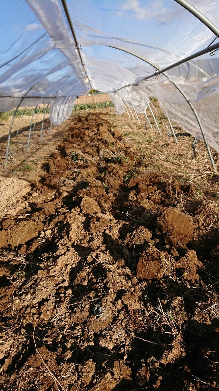 今日は大寒で寒いときですが、なぜか温かい。ハウス内の天地返しが遅れてしまいましたが、してしまわなければと今日行いました。ハウスの高さが家庭菜園用なので低い。体をかがみながらスコップで行いました。少し疲れました。このハウス(10m)は元はビニールハウスなのですが、設置して少し経った頃、鹿か風により穴が開き、だんだん北側(左手)が破れてしまい、ビニールをやめ、防虫ネットにしました。。