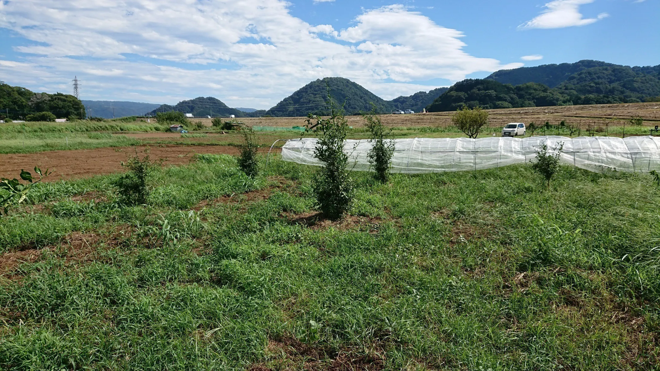 写真の土地は借地です。新たな土地が確保できたときには、この土地は野菜栽培のみの予定です。