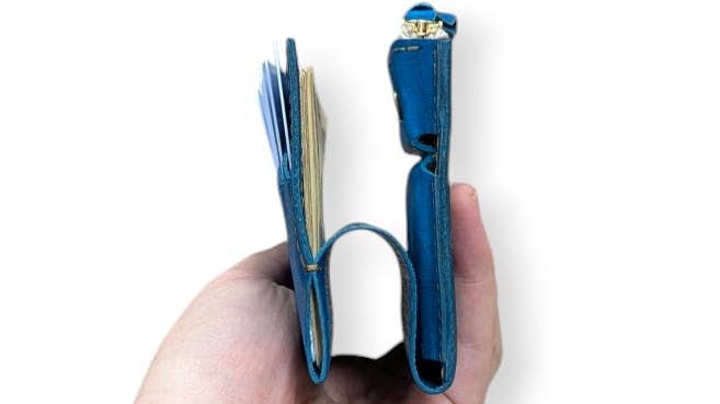 スリットポケットに12枚、スタックポケットに8枚、隠しポケットに2枚収納すると、合計22枚ものカードを収納できます。