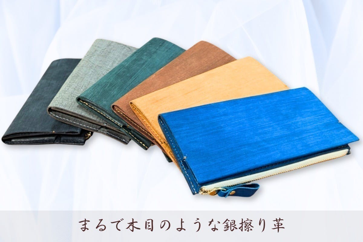 まるで木目の様に見える銀面は気品があり、どことなく和の雰囲気を感じる革です。