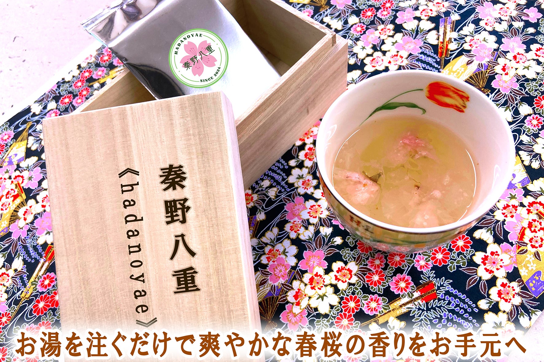 2024年4月に秦野の八重桜農家から約180キログラムの八重桜(関山・七分咲き前の蕾)を買い取り、伝統的な手法で桜漬けを作りました。この伝統的な桜漬けを、長年の乾燥技術を駆使して風味と食感を保ちつつお湯で戻せる技術を持つ企業と協力し、特殊乾燥化に成功しました。製品名は「秦野八重(hadanoyae)」です。