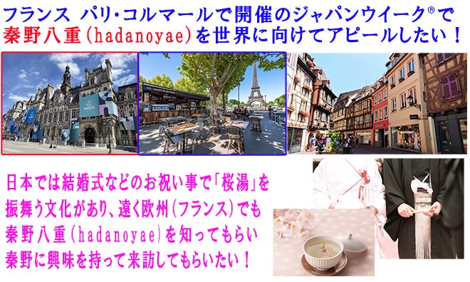 フランスで開催される「ジャパンウィーク®(フェスティバル)」に「秦野八重(hadano yae)」を出展するにあたり、皆様のご支援をいただきながら進行させていただきたいと考えております。