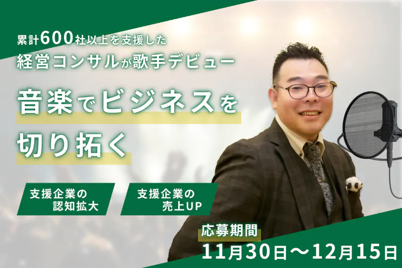こうした背景を踏まえ、音楽を通じて中小企業や事業家さんの売上アップや認知度拡大を目指しています。情報があふれる今の時代だからこそ、エンタメの力を活かして支援者のビジネスを多くの人に届け、企業や事業が持つ本来の魅力をもっと輝かせるお手伝いができればと思っています。