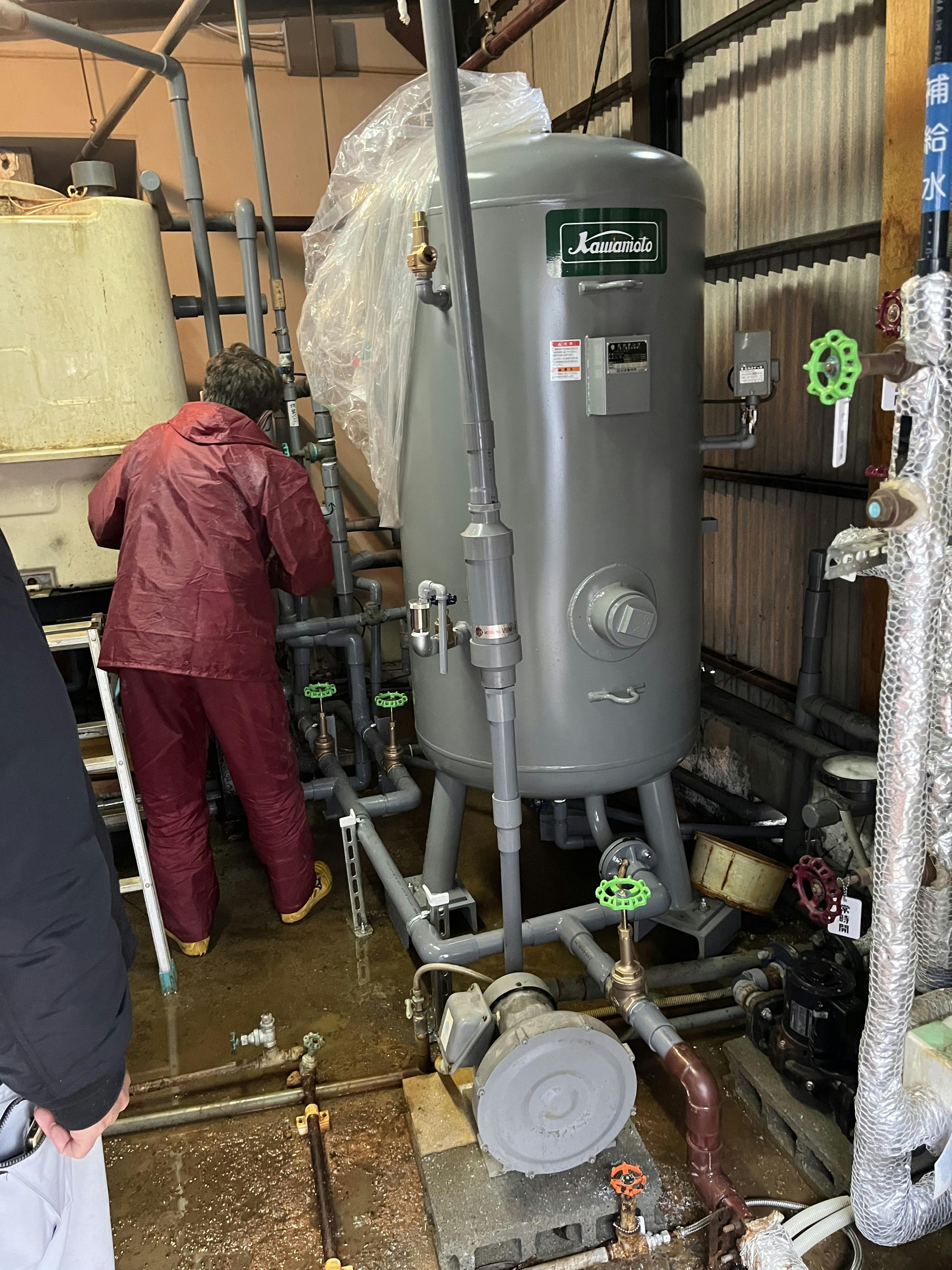 このタンクは本プロジェクトのメインの達成目標としていたものでこのタンクに穴が開いてからカランの水は出ない、源泉(47℃!)を十分に冷却できないといった厳しい状況に悩まされておりました。