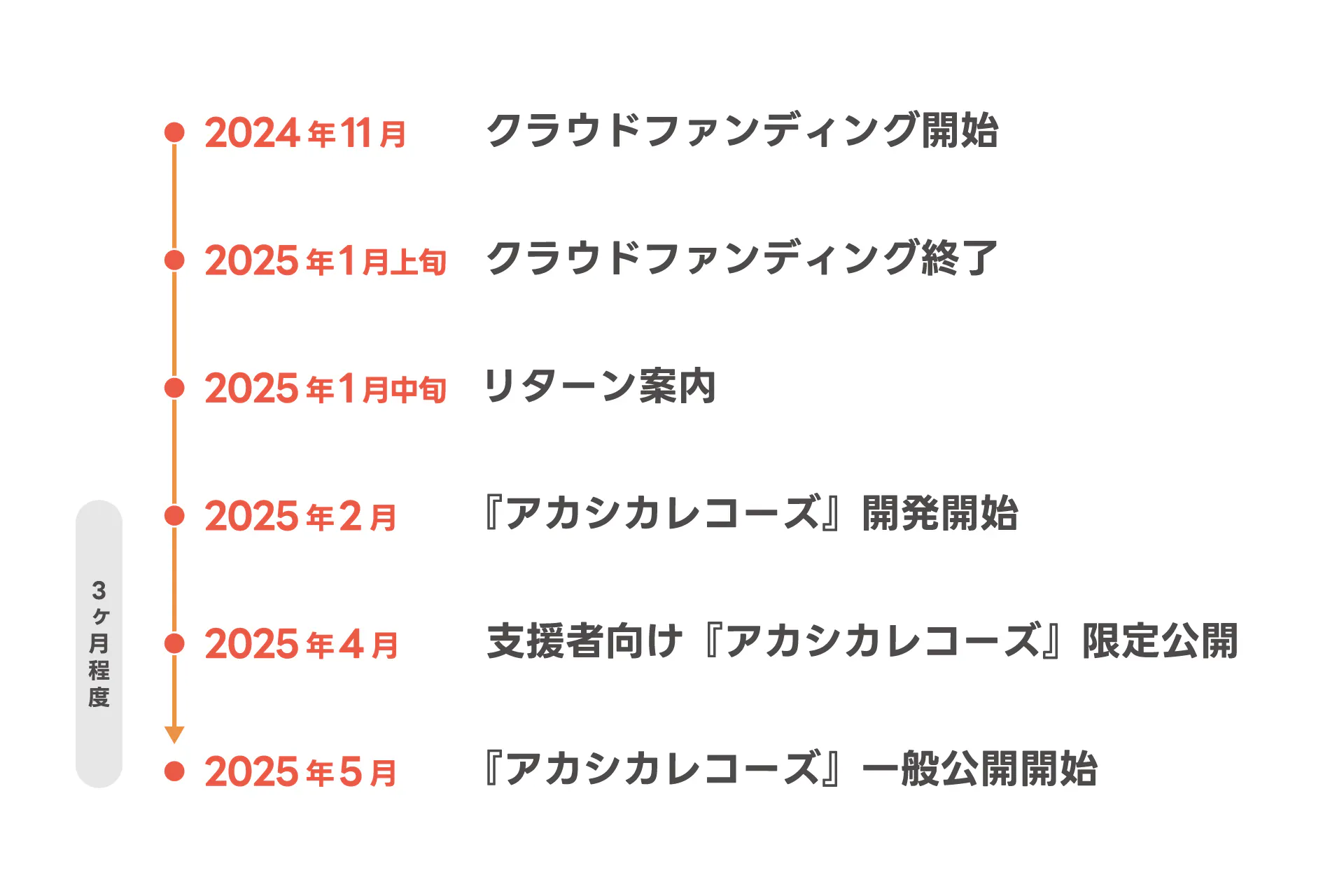 『アカシカレコーズ』の開発状況や最新コンテンツ情報を、最優先でお届けします。進捗をいち早く確認でき、プロジェクトの成長をリアルタイムで見守る体験ができます。