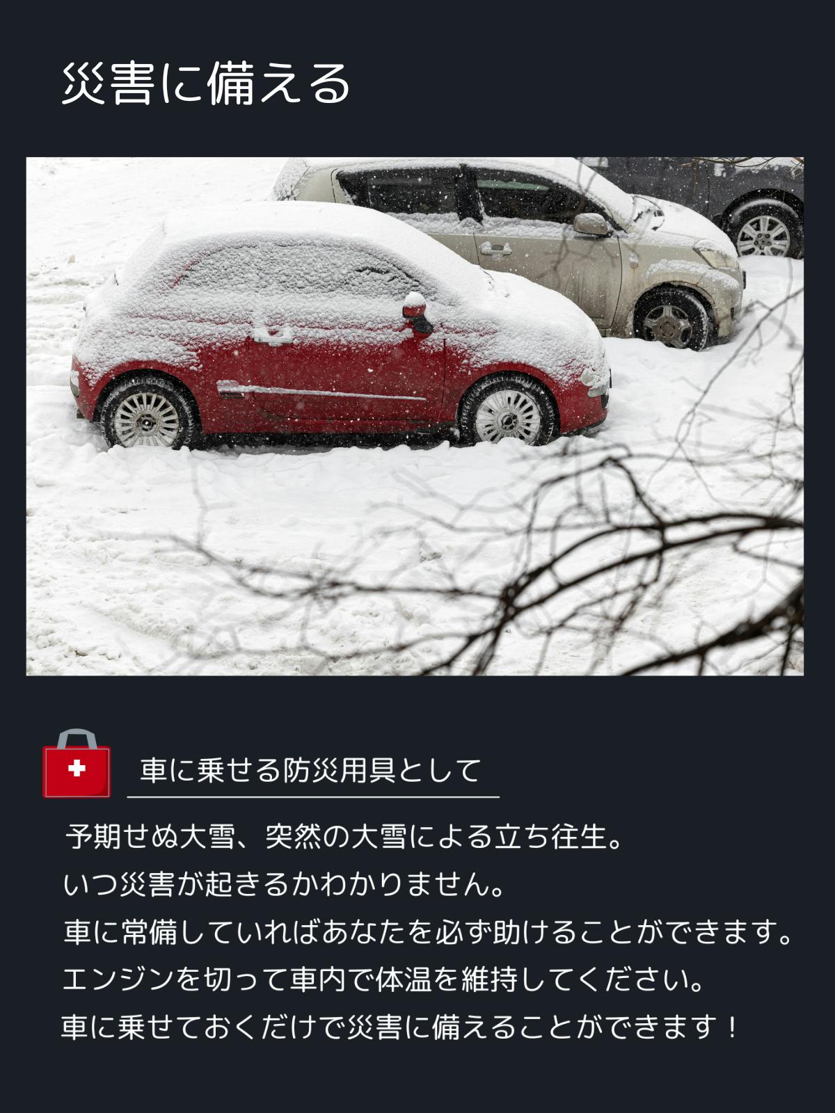 通勤・通学時の防寒アイテムとしても、アウトドアの非常用アイテムとしても最適。