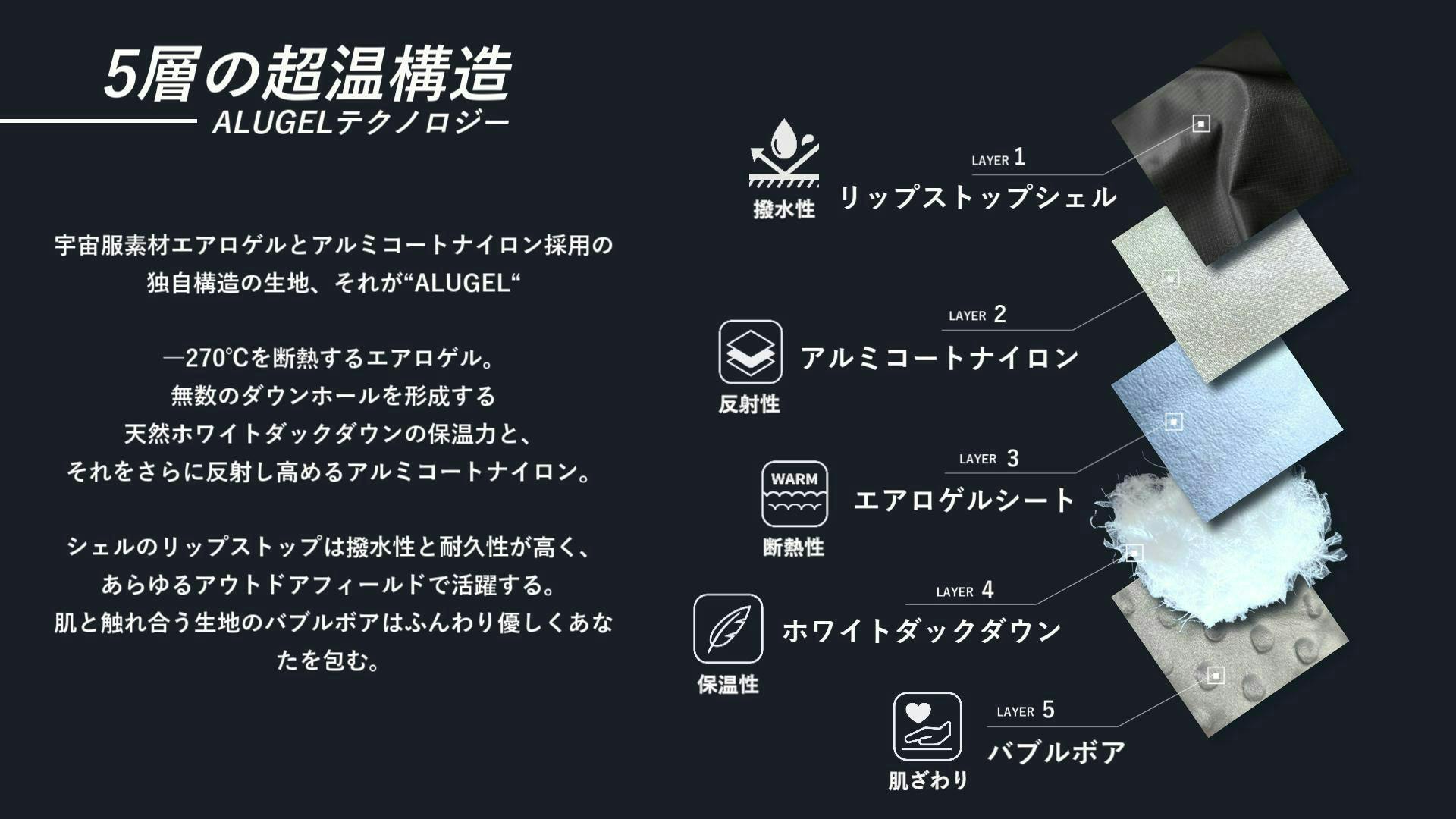 ウルトラダウンブランケットの暖かさの秘密は5層構造にあります。