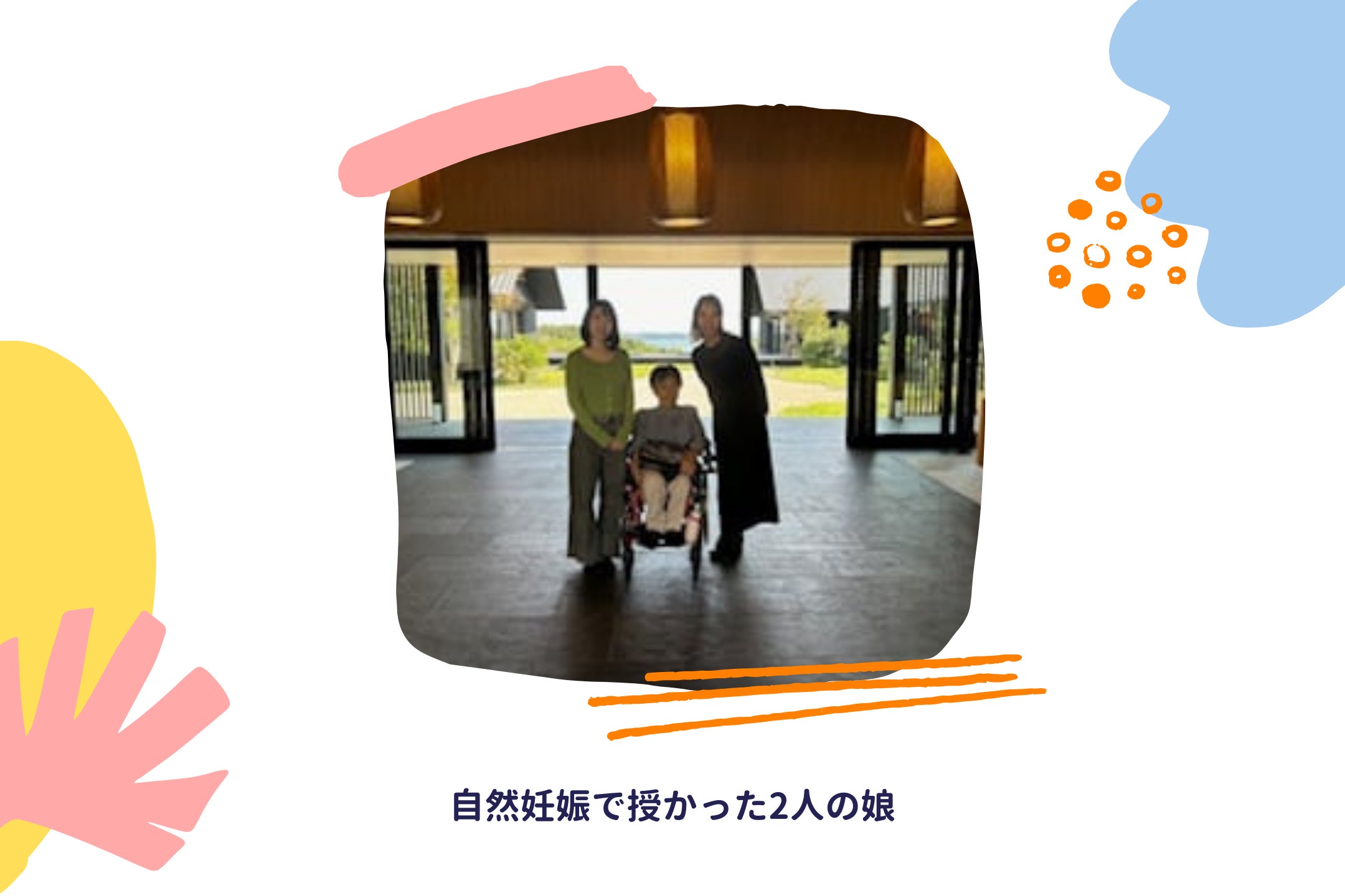 しばらくすると今度は赤ちゃんが欲しくなりました。リハビリの先生に相談すると「リスクが大きいです」と言われましたが、“産婦人科の先生に相談してみなければわからないじゃない”と勇気を出して産婦人科を受診し、不妊治療の末、自然妊娠で2人の娘を授かりました。