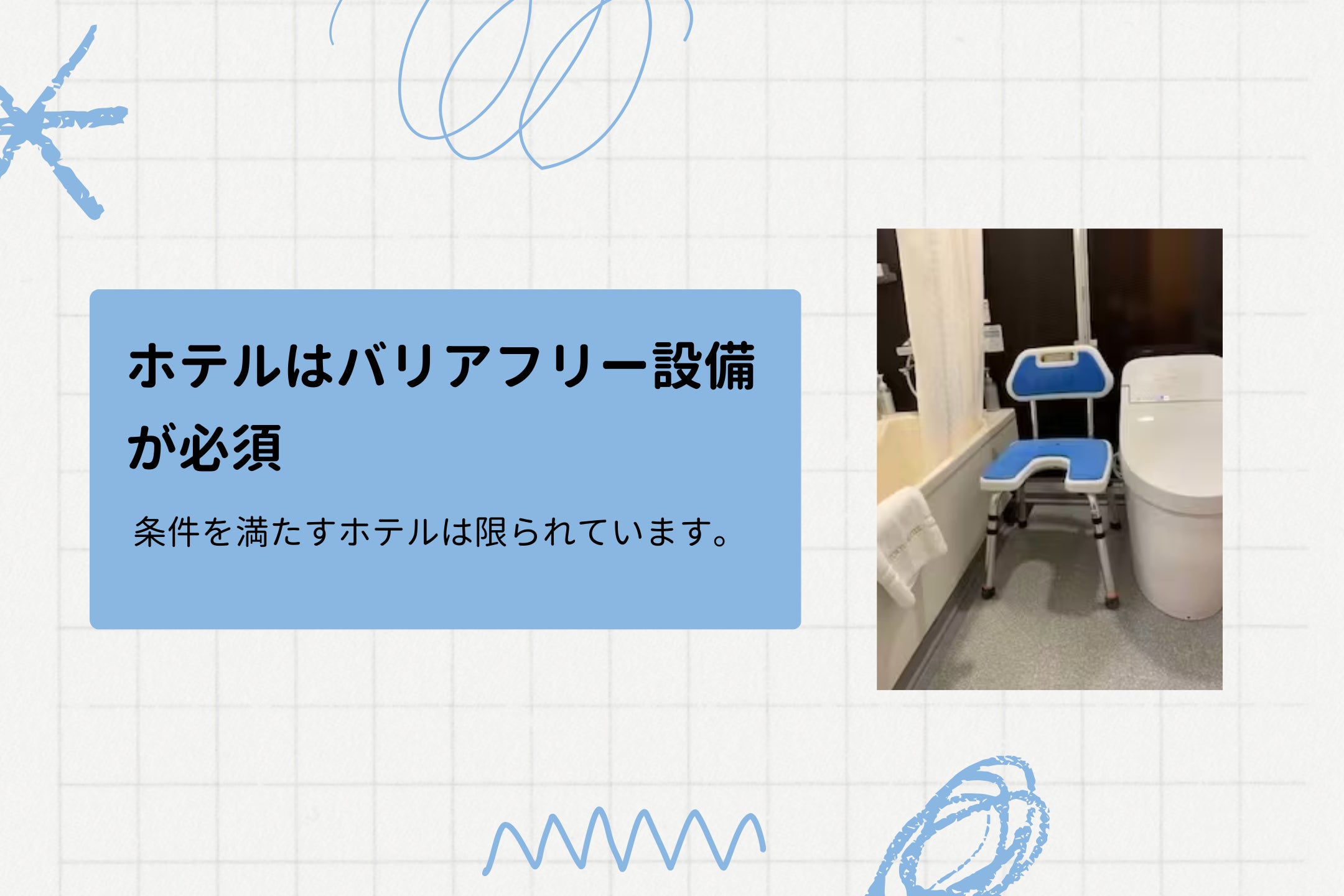 また、ホテルはバリアフリー設備が必須です。