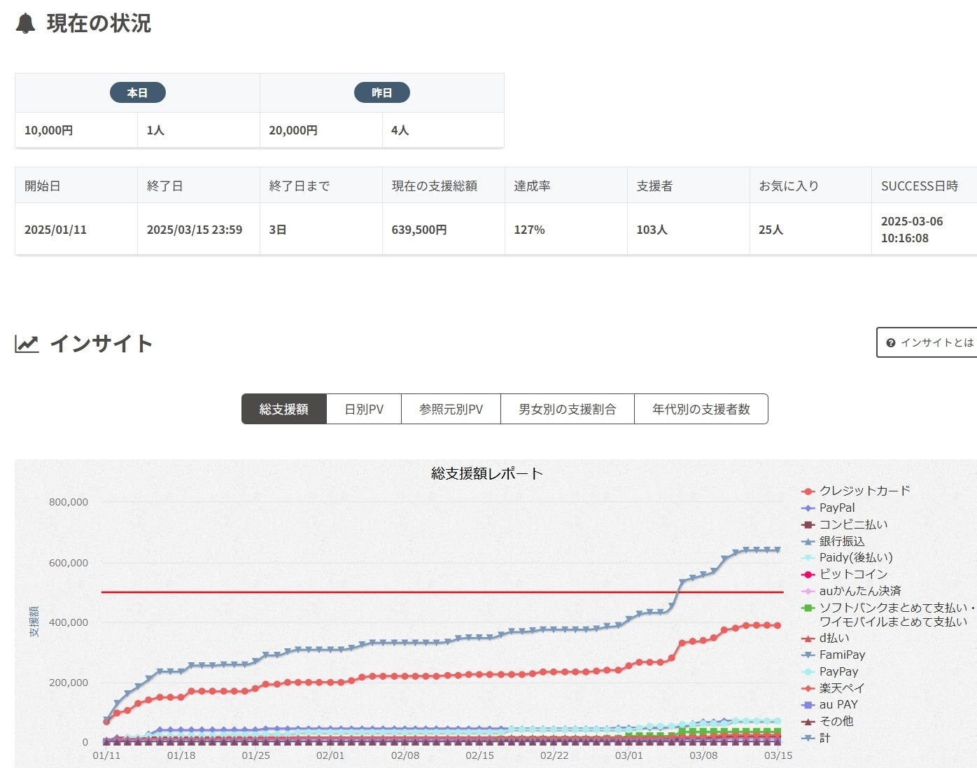 現在の支援総額は63万9500円!
