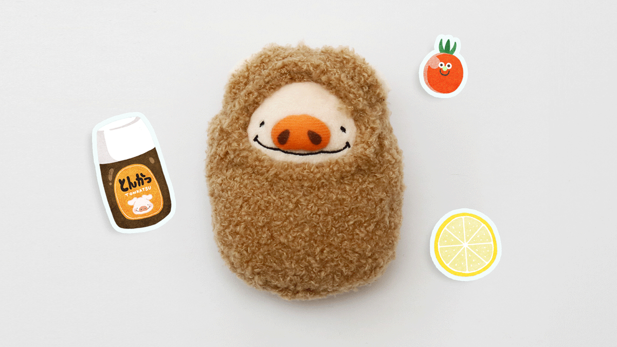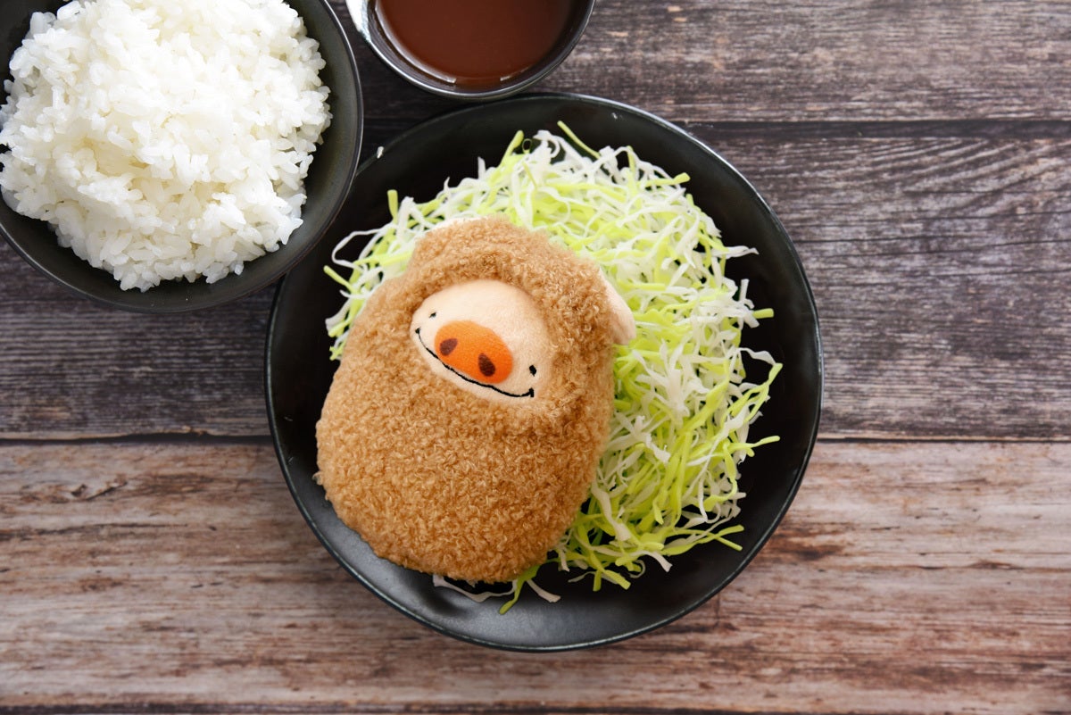ふわふわ、サクサクのとんかつマスコットをお楽しみください。