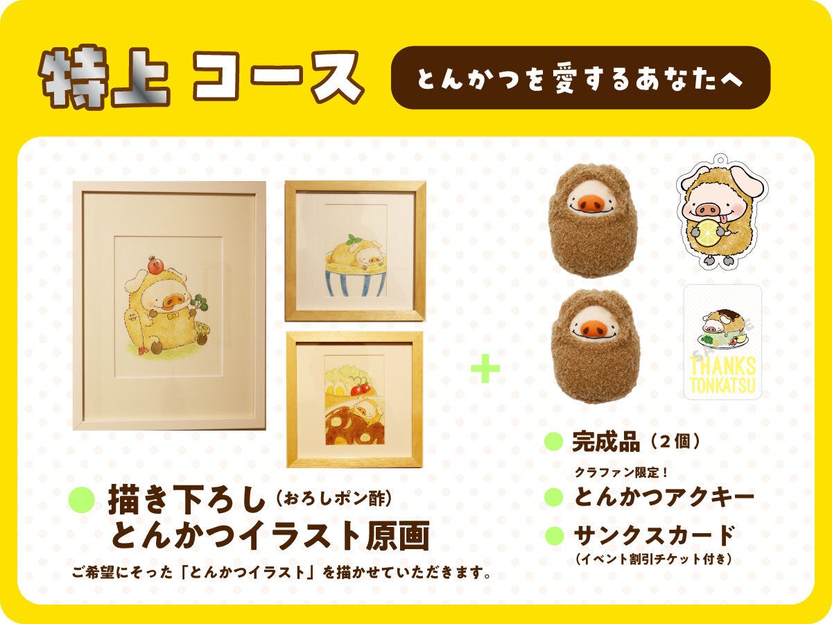 「特上コース」では、これまで全てのリターン品に加え、ご希望にそった「世界に1つだけのとんかつイラスト」を心を込めて描き下ろさせていただきます。