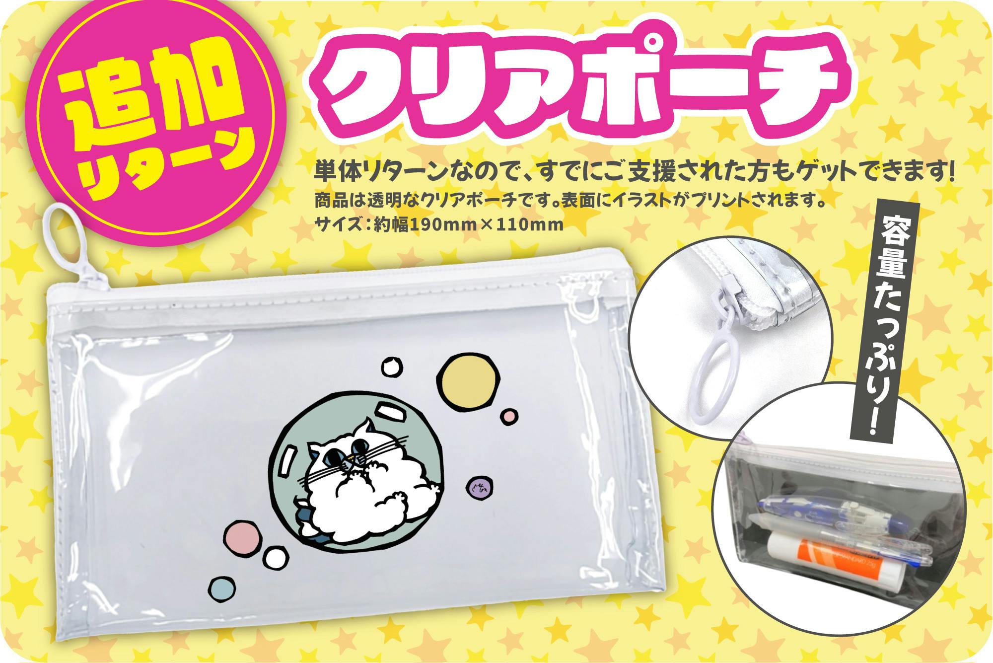 追加リターンではクリアポーチとリュックをゲットできるプランと...