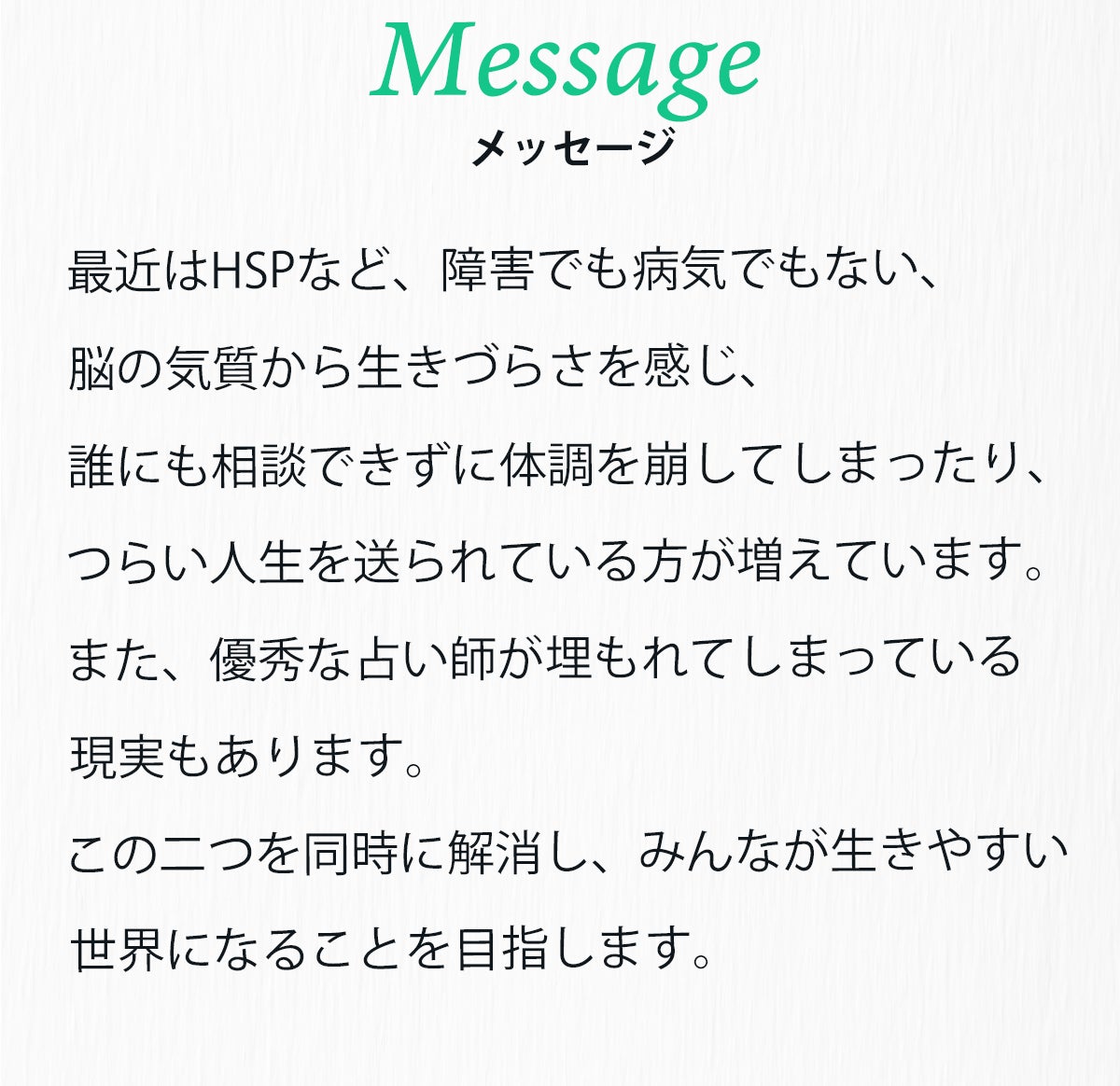 何歳でも、どんな経歴でも、どんな環境でも「人生は変えられる」と伝えたい想いと、私の人生を支えてくれた「占い」への想いが、この度のプロジェクトを立ち上げるきっかけになりました。