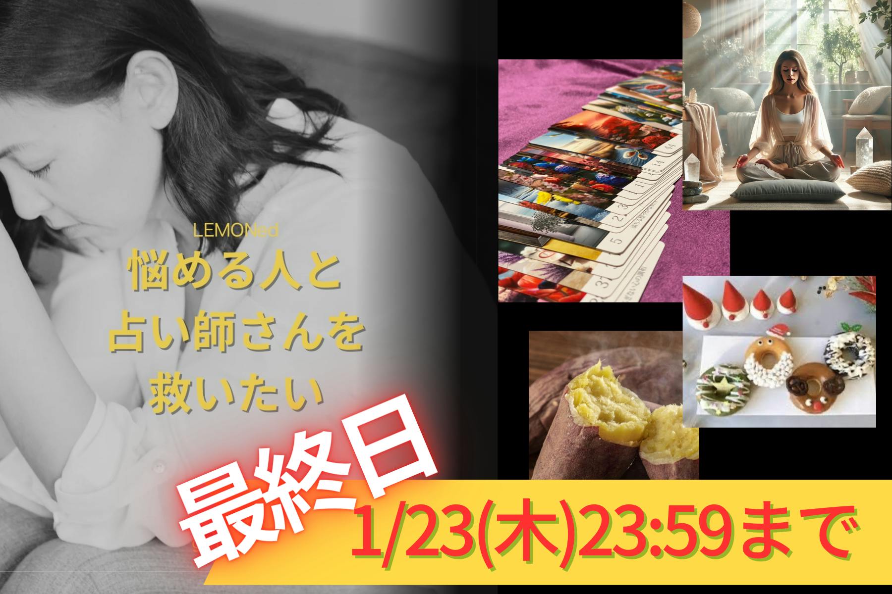 2025/01/21 08:00いよいよLEMONedのクラウドファンディング最終日!1月23日(木)夜、さなえ代表をはじめ、仲間の占い師たちが出演する 「インスタLIVE」 を開催します!この特別な時間をお見逃しなく!LIVEの概要日程:1月23日(木) 19:00~22:00配信場所:Instagram出演者:代表さなえ + のどか、あまな、うめこ※出演者のアカウントをフォローしておいてね!●さなえsanae_tarot_79●あまなamana_uranai165●うめこumeko.tarot●のどかnodoka_3rdring1. 悩んでいる人への提案「一人で悩まないでほしい」――占い師たちが寄り添い、力強いメッセージを届けます。どんな悩みを持つ人でも、LEMONedなら新しい道を見つけられるかもしれません。2. クラウドファンディングの支援について「クラウドファンディングを知らなかった…」という方も安心!LEMONedのサービスや支援方法、リターンについて説明します。この機会にぜひ参加してください!3. 占い師の魅力を紹介代表さなえをはじめ、あまなさん、うめこさん、のどかさんが登場。それぞれの占いスタイルや得意分野、どんな相談に強いのかをお話しします。4人の個性が際立つトークを楽しんでください!4. 支援で得られるメリットを解説支援者限定の特典や、クラファンならではの特別セッションについてもご紹介します。支援することで、あなた自身も心のサポートを得られるかもしれません。夜のひとときに聞くラジオ感覚で楽しもう!3時間の長丁場ということで、ライブはゆったりと進行する予定です。「夜の暇な時間に聞くラジオ」のような感覚で、気軽に楽しんでください。コメントでの質問や感想も大歓迎!途中で少しグダグダするかも…というアットホームな雰囲気も!?この温かさを感じつつ、リラックスしてお楽しみくださいね。支援で年間の運気の特別特典!LEMONedのクラファンは 1月23日 23:59まで!支援してくださった方には、クラファン限定の豪華リターンや特別特典が待っています。まとめ:LEMONedでつながる夜LEMONedは、悩みを共有したり、新しい発見を得られる場です。占い師たちの魅力を知るとともに心の輪を広げるきっかけにしてみませんか?2024年1月23日(木)19:00、Instagramでお待ちしています!一緒にLEMONedを盛り上げましょう! もっと見る