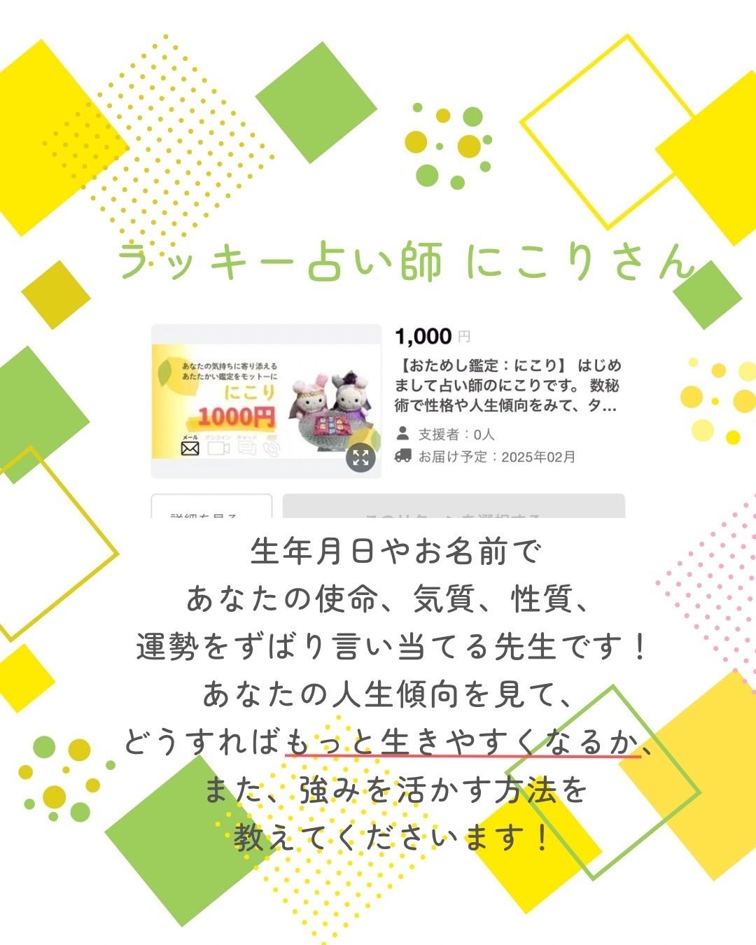【もっと生きやすくなりたい】人にはにこりさん。生年月日やお名前から、使命・気質・性質・運勢を言い当て強みを生かす方法を伝授します。