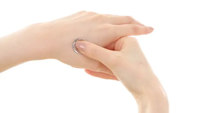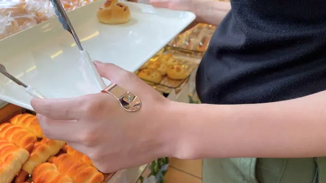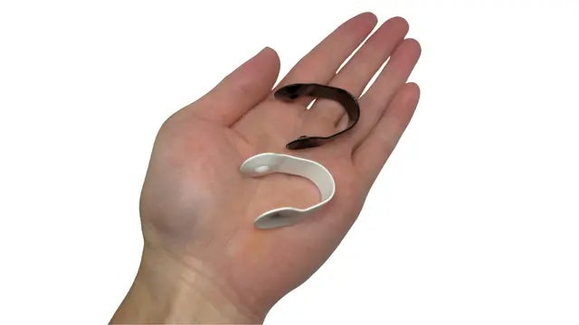 ZukiPitaは装着するだけで手放しで合谷(ごうこく)を刺激してくれます。金属製なので手のサイズに合わせて幅を調整できます。