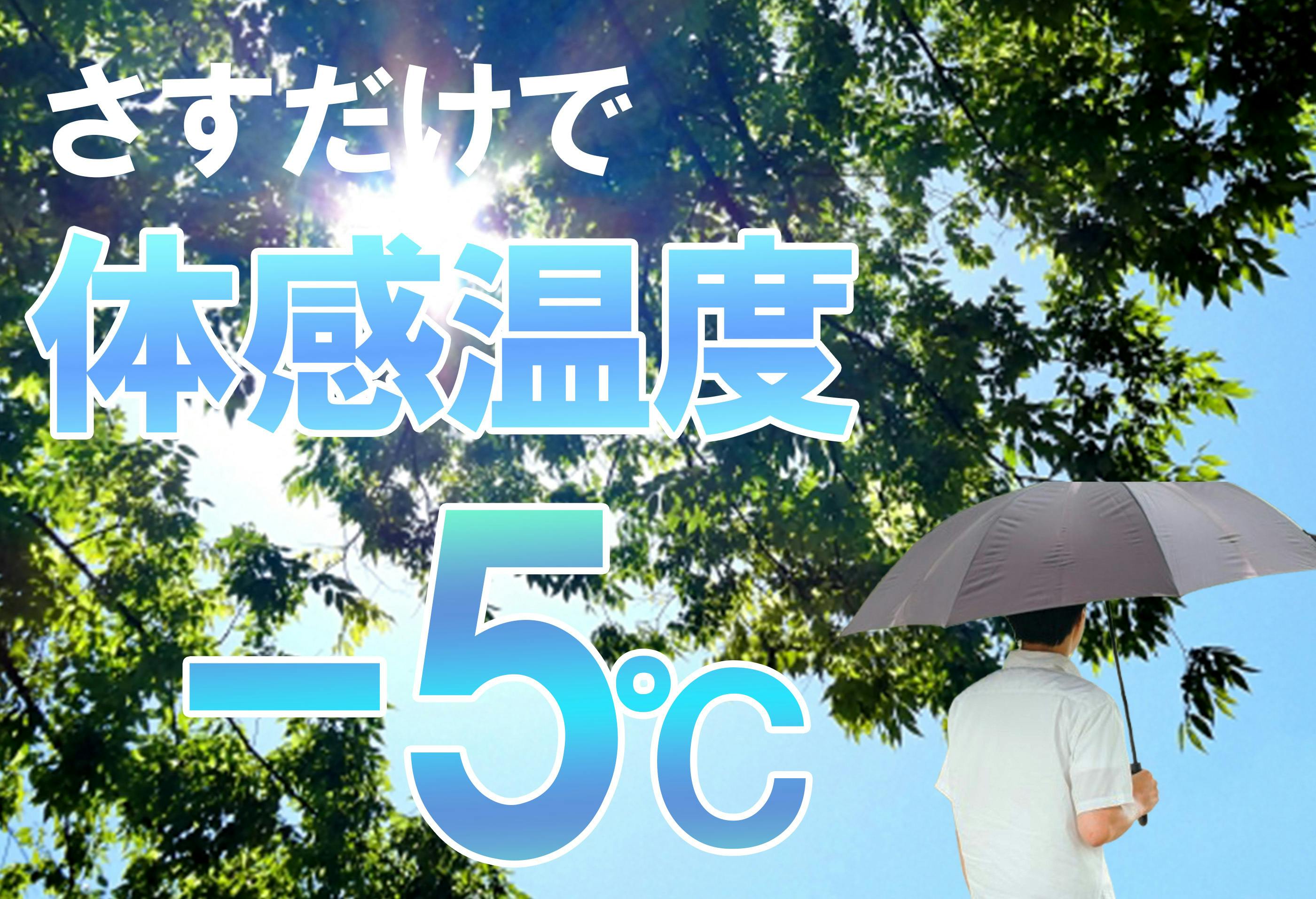 灼熱の太陽の下でも、ひんやり快適。遮光+UVカットで熱を効率よく逃がすことで、通常の日傘と比べて「体感温度 -5℃」を実現しました。