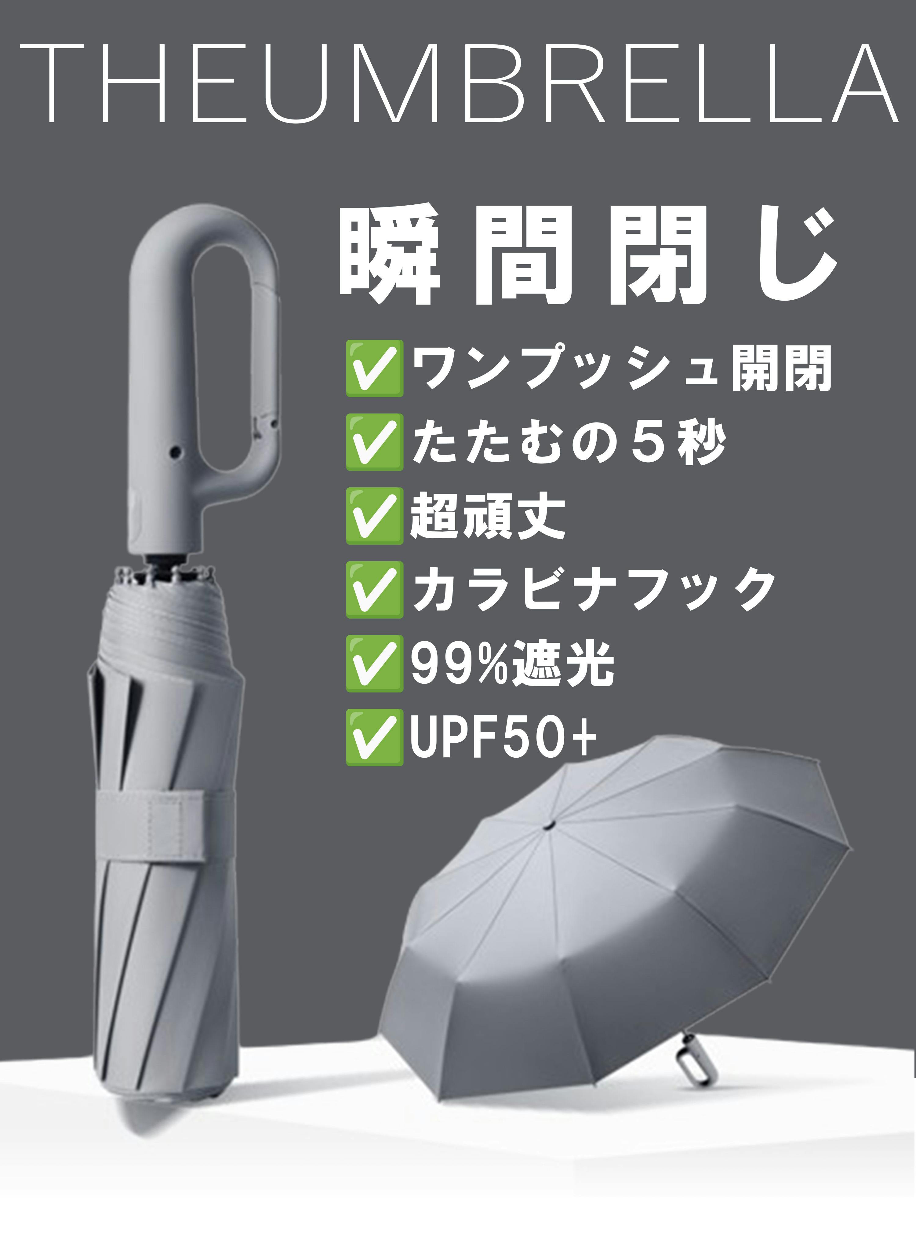 ボタンひとつで瞬時に開閉。ボタンを押すだけで一瞬に傘が開くので片手でカンタン。