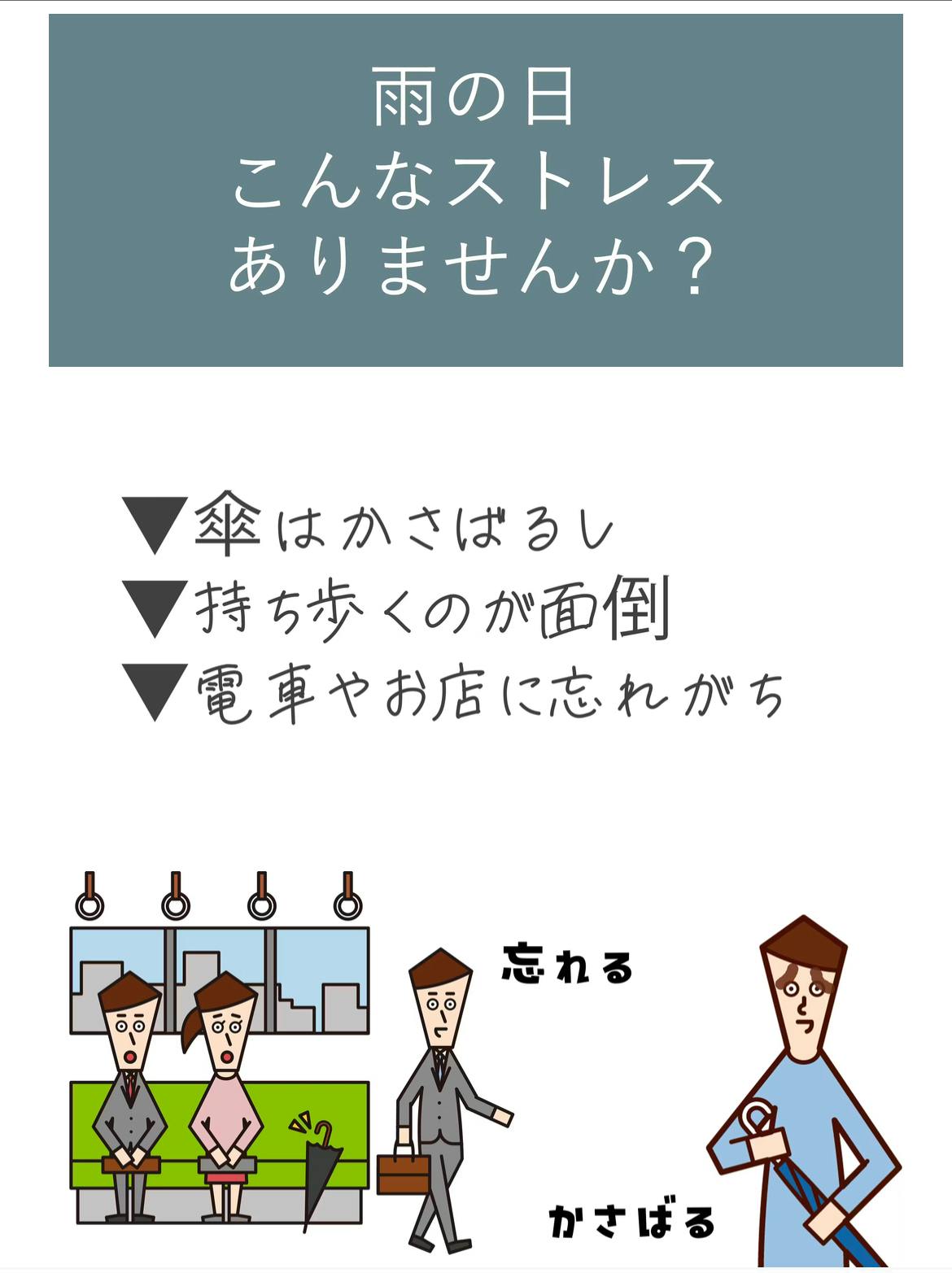 折り畳み傘って便利ですがなにかとデメリットもありますよね。かさばる忘れる持ち歩きが面倒それ、全てこれ一本で解決です。是非!