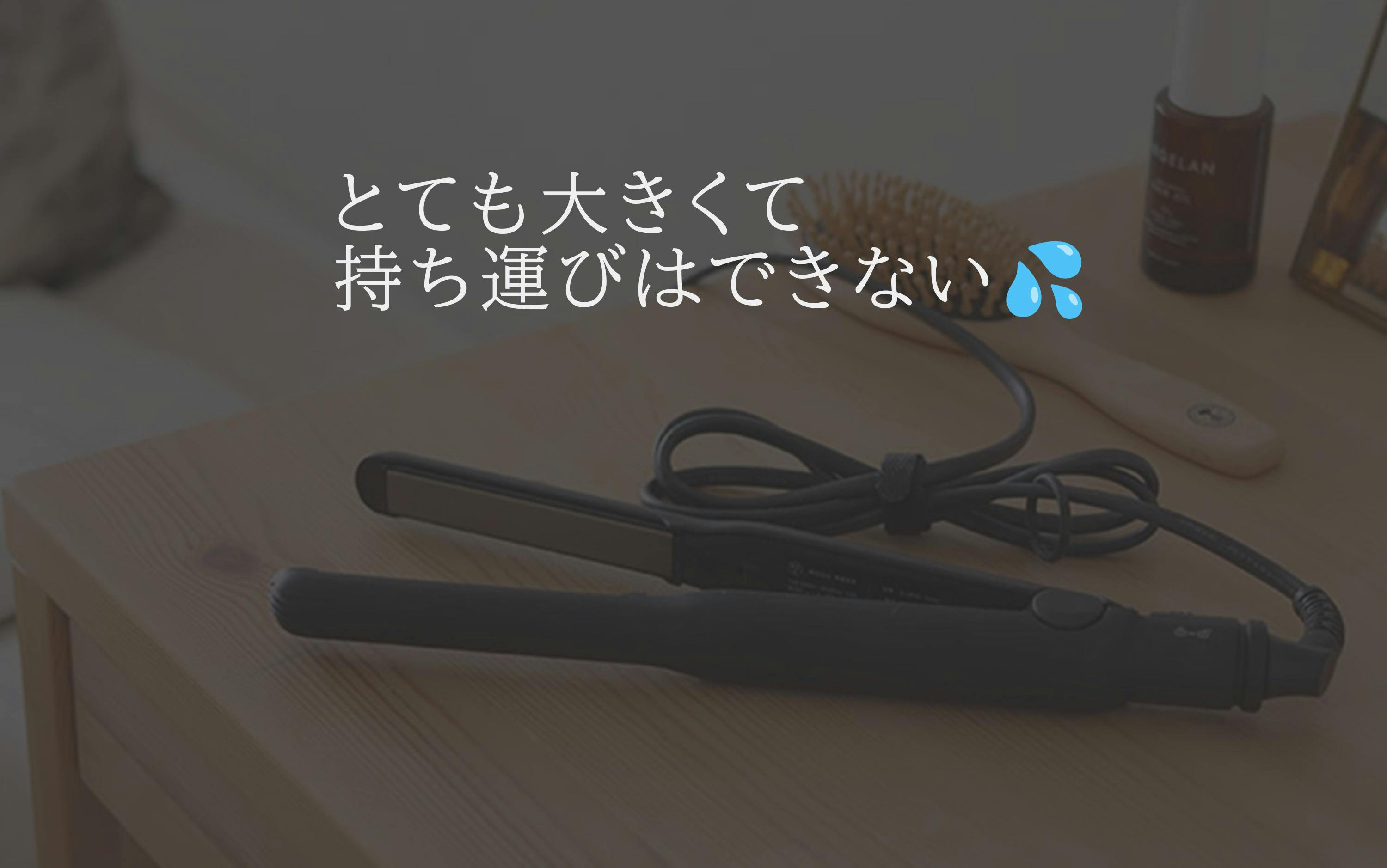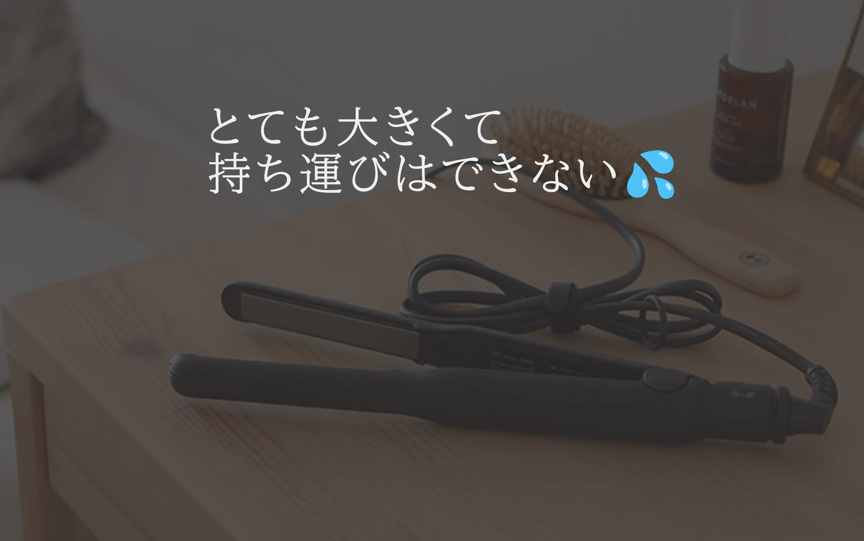 一般的なヘアアイロンはコンセントが必要なことと、大きいことと、加熱プレートがむき出しなので、持ち運びには向きません。