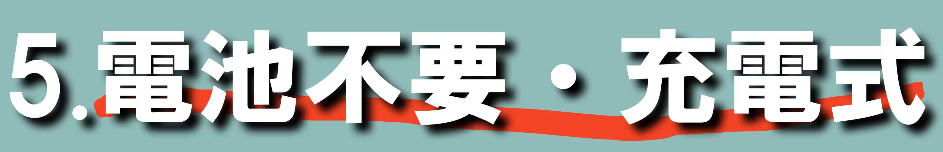 電池が不要の充電式を採用しました。充電はうれしいUSB充電。フル充電で約60分使用可能です。