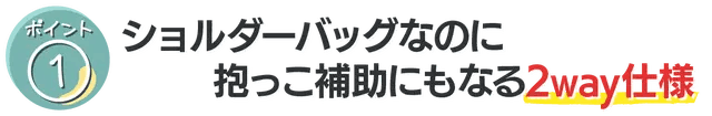 ショルダーバック、時々抱っこ紐で外出先でも手軽に抱っこすることが可能になります。