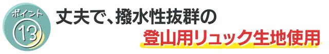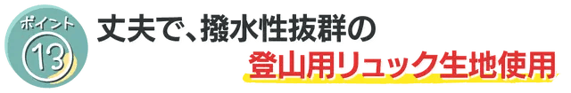 使用している生地は登山用のリュックに使われているとても丈夫な生地です。密度が細かく、撥水性に優れています。