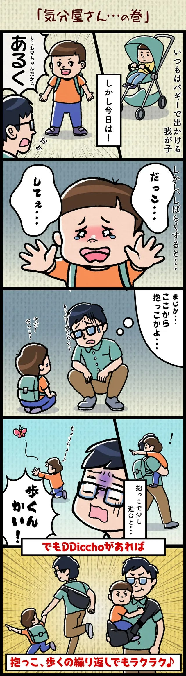 わが子も公園では散々走っていたのに、帰る時間になると足が折れます(抱っこしてというアピールです)(笑)しかしスーパーのお菓子コーナーに着くと歩きます。