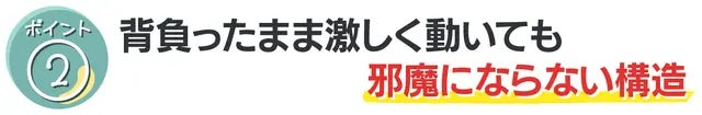 更に体にフィットする構造なので、激しく遊んでも、バッグが前に落ちてきて邪魔になることはありません。